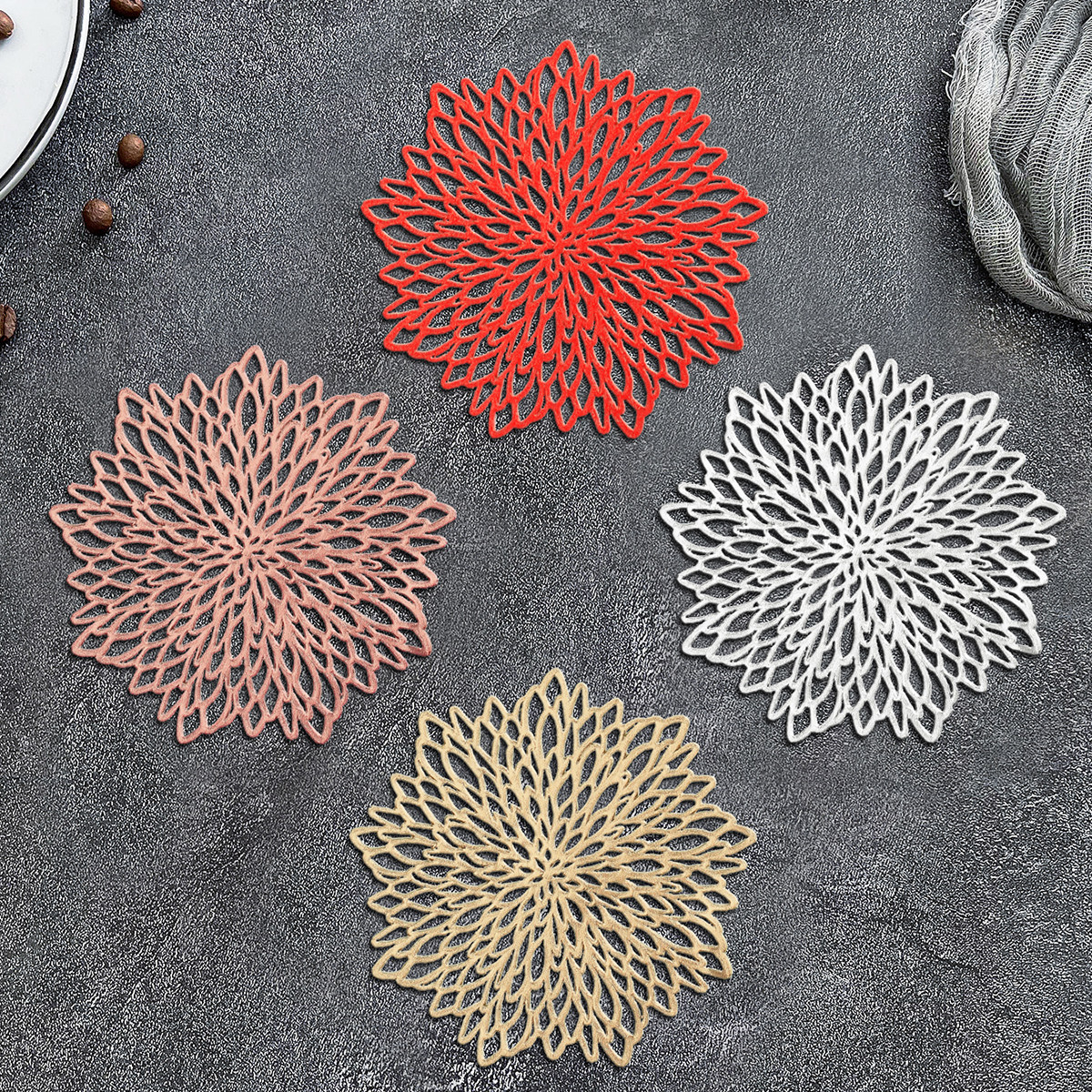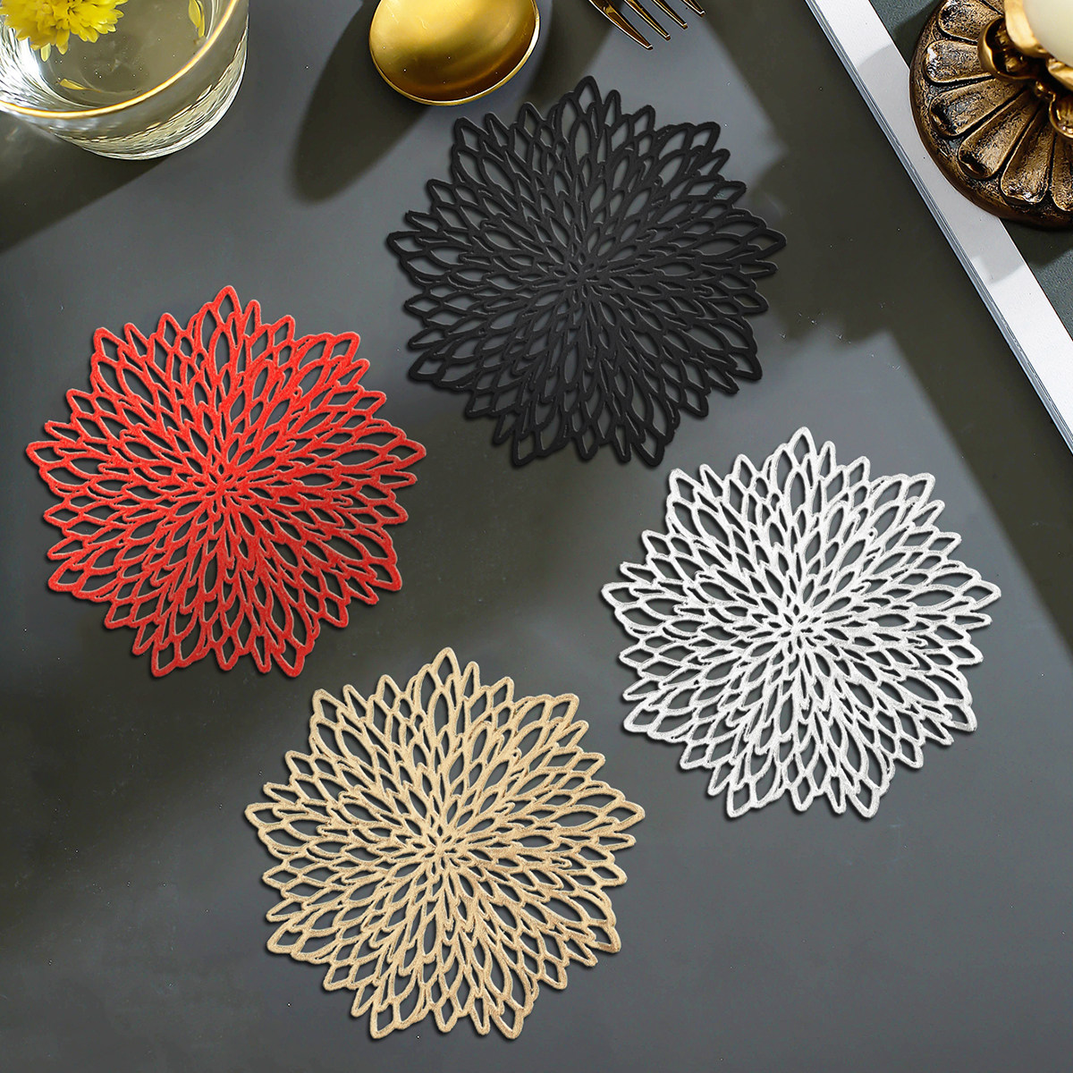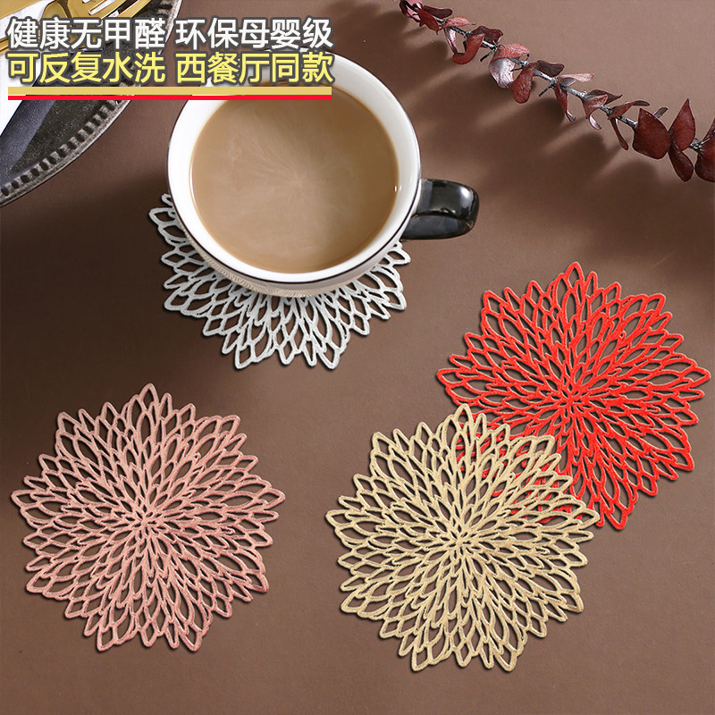 轻奢花朵镂空PVC杯垫防滑创意防烫隔热咖啡垫茶杯垫ins风西餐桌面