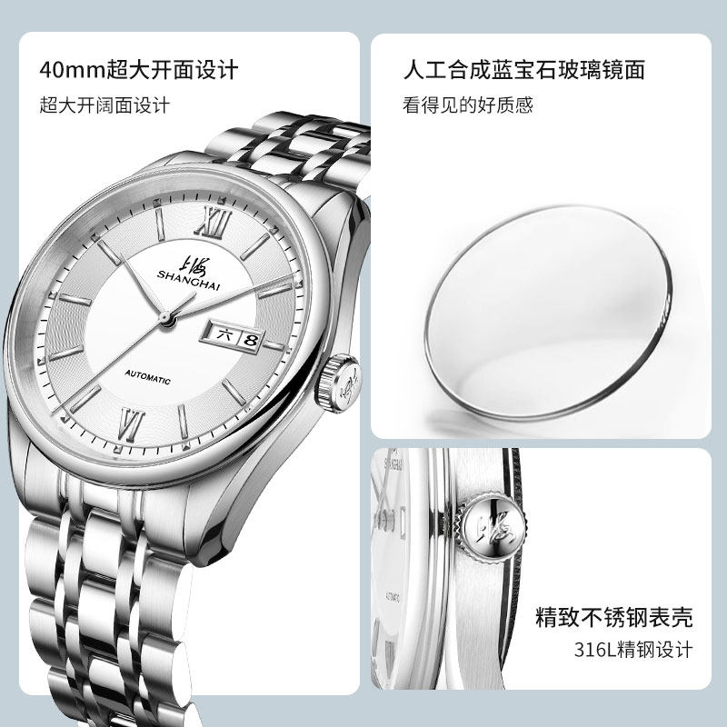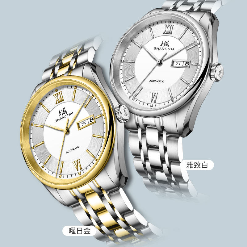 上海牌手表官方旗舰店自动机械表国表商务双历防水男士腕表3008