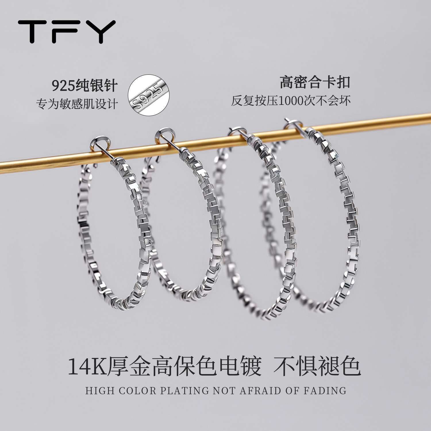 999纯银耳针许妍同款大圆圈素圈耳环宽耳钉耳饰2025新款爆款耳圈