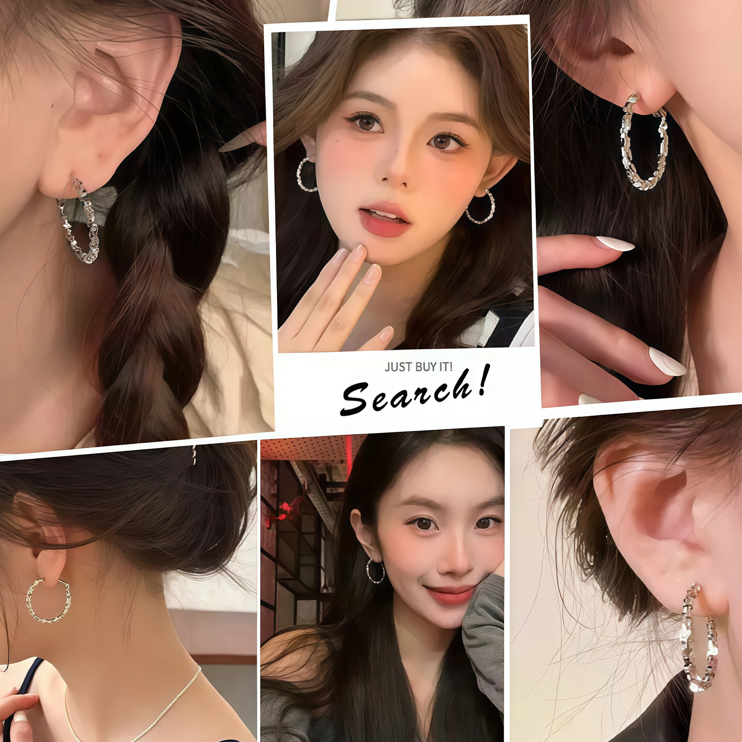 925银耳针耳圈碎银子大圆圈素圈耳扣耳环2025新款爆款高级耳饰女