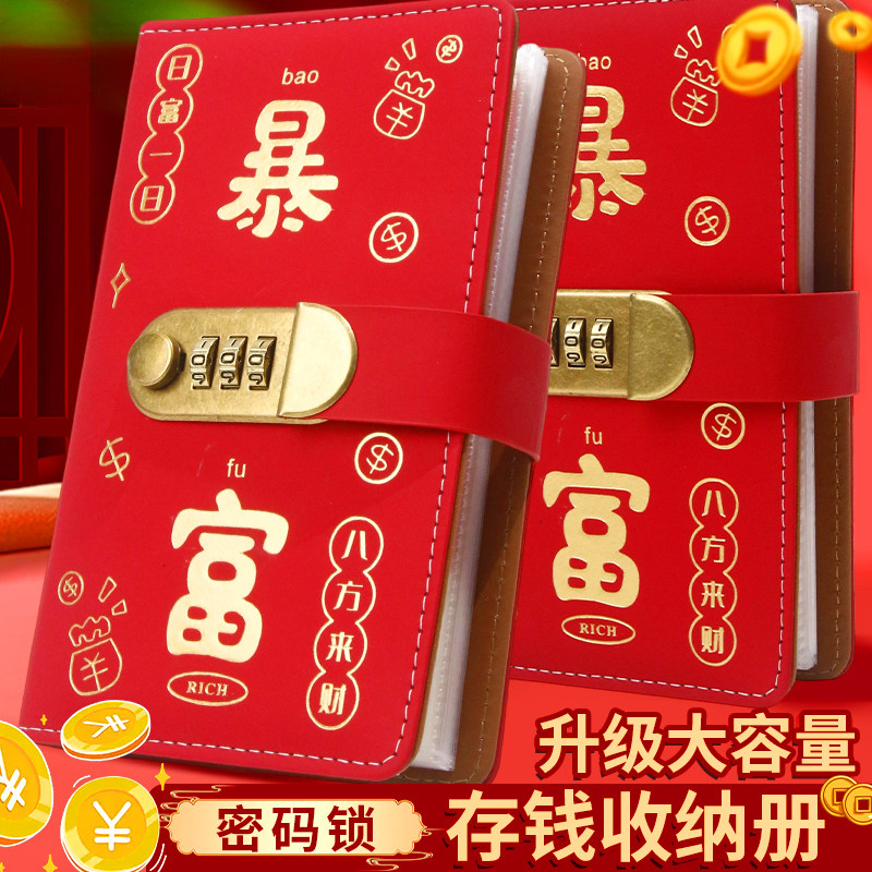 暴富存钱本存钱夹现金存钱本密码锁钱包可放现金大容量理财神器