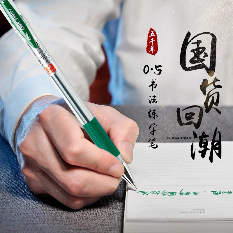 五千年绿色中性笔0.5mm学生用标记笔009B教师签字笔批发文具用品