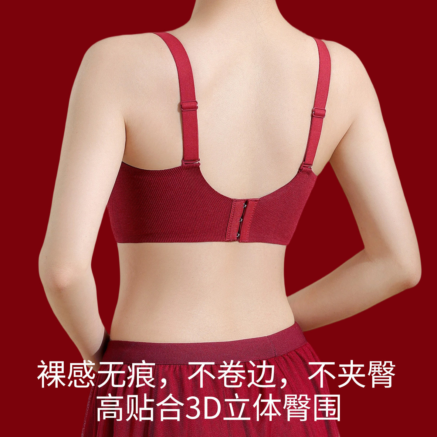 猫人本命年小胸聚拢红色内衣新款无痕显大结婚新娘文胸罩内裤套装