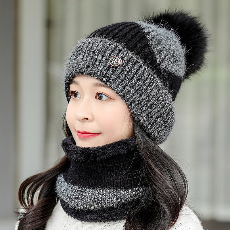 围巾帽子手套一体女连帽冬季帽可爱保暖围脖毛绒冬天三件套厚防寒