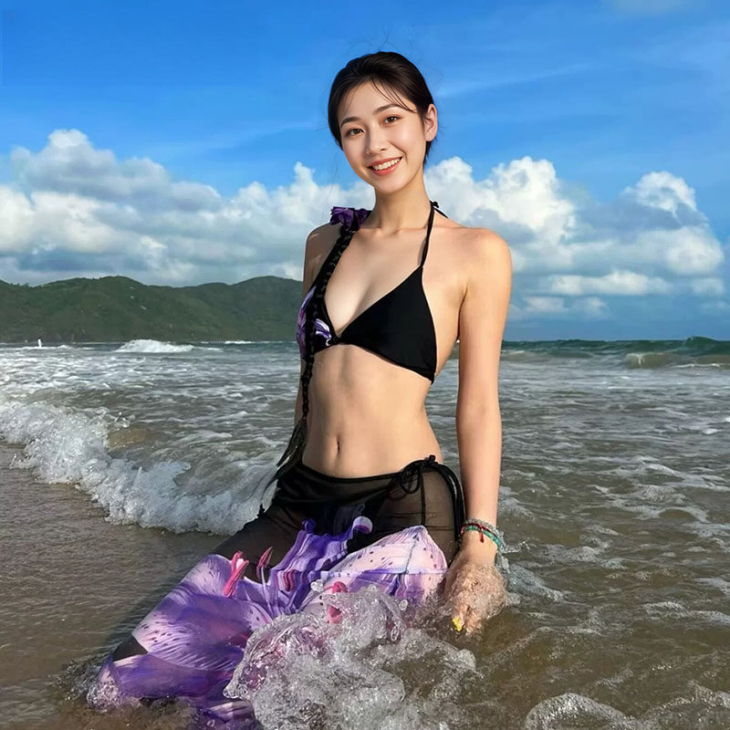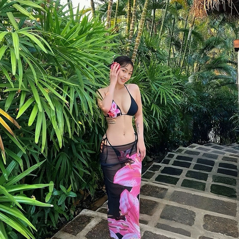 印花三点式比基尼三件套包臀半裙泳装性感显瘦分体泳衣长裙bikini
