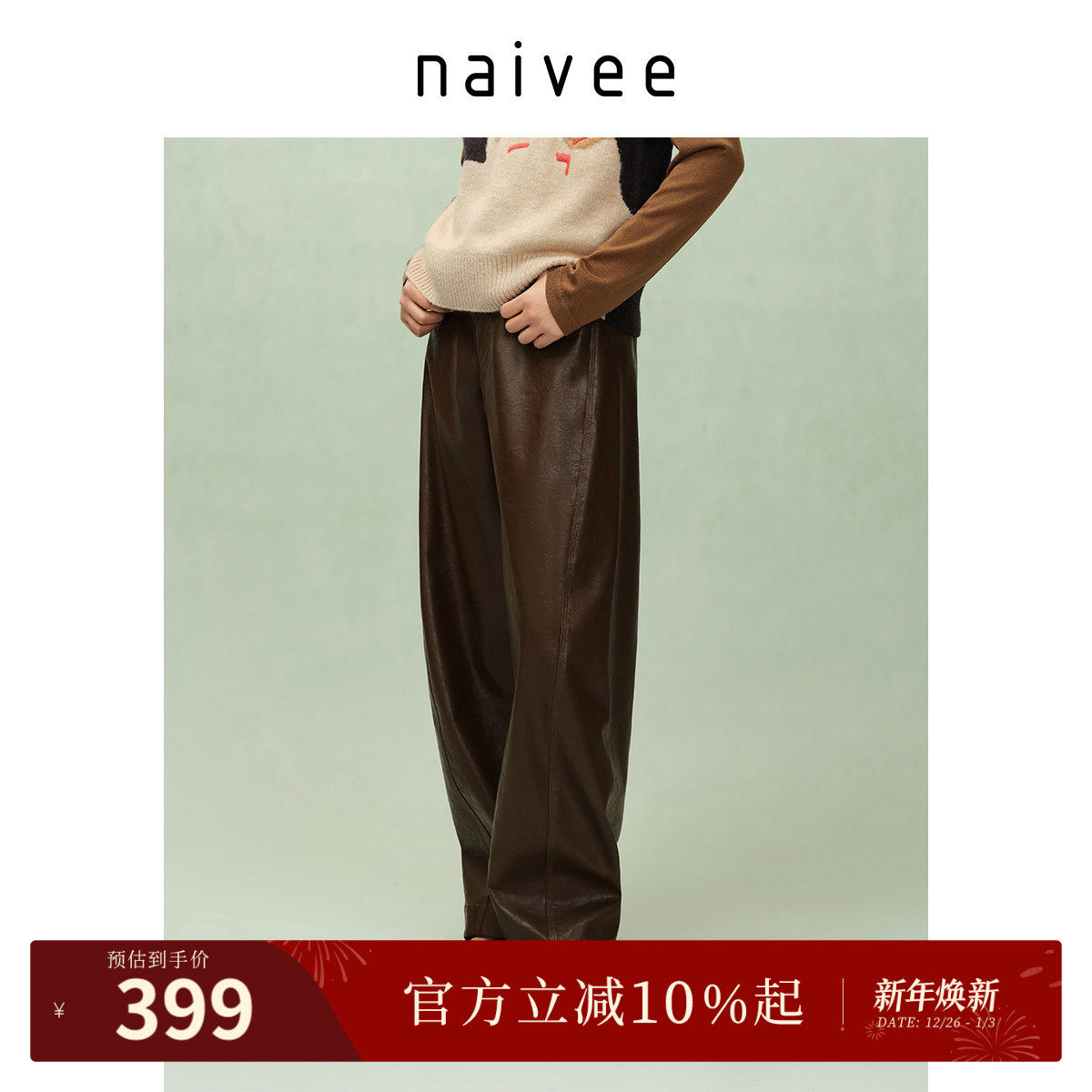 【香蕉皮裤】商场同款naivee纳薇25秋新款酷飒百搭休闲裤及地长裤