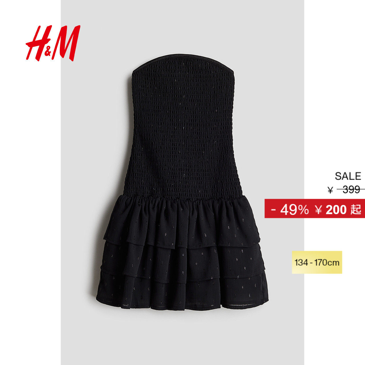 HM童装儿童女童2025年冬季新款缩褶雪纺连衣裙1256429