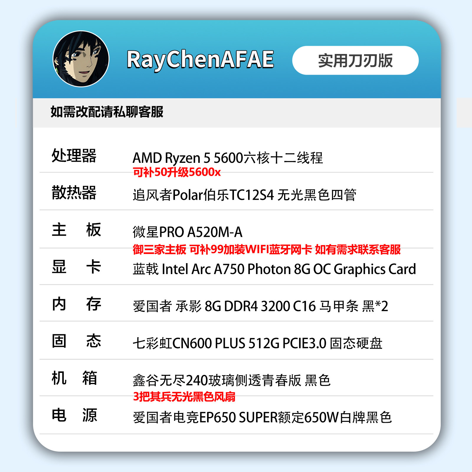 IntelArc A750+R5 5600高颜值海景房高性能DIY游戏生产力电脑主机