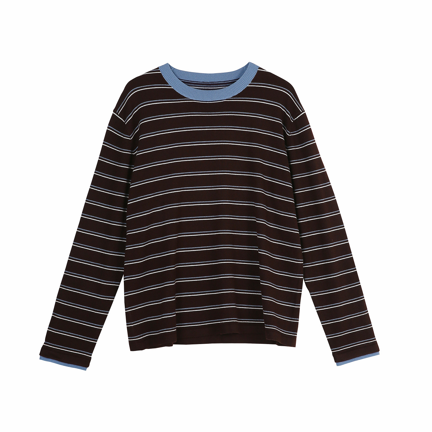 三福长袖上衣2025新款秋季圆领修身针织衫简约纯色内搭打底衫女装