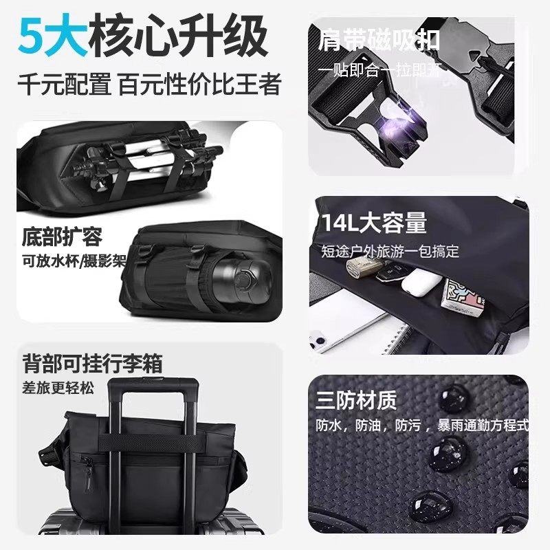 新款斜挎包男士单肩包背包2025新款胸包骑行车腰包通勤便携磁吸扣