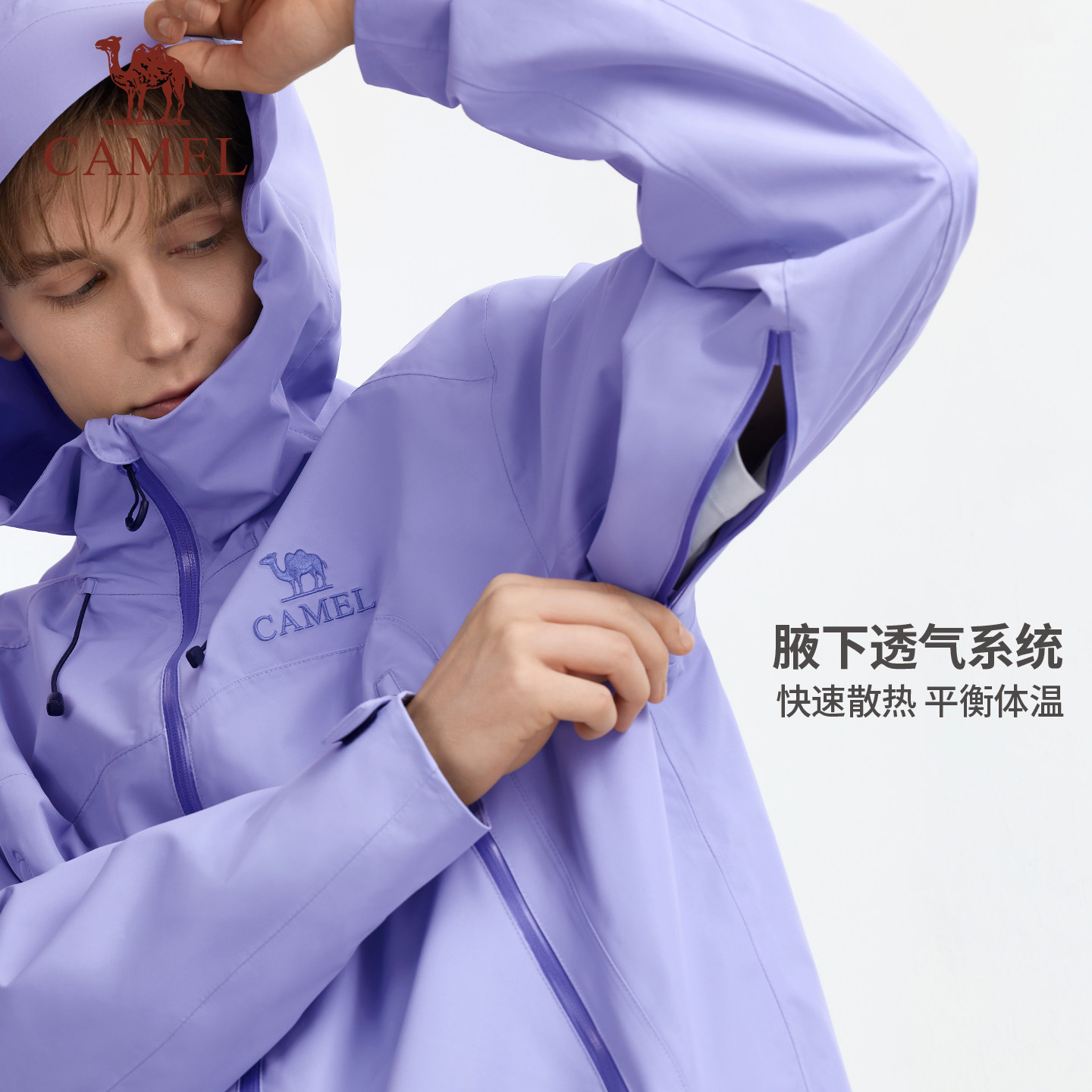 [2026新款]骆驼彩壳冲锋衣女腋下拉链防暴雨户外硬壳防水风衣外套