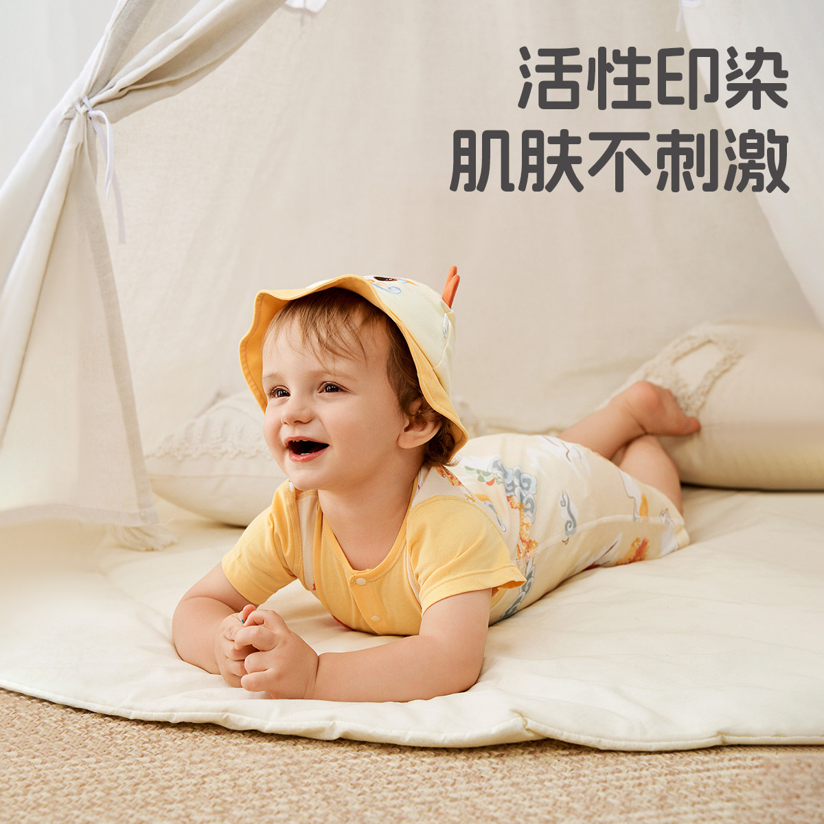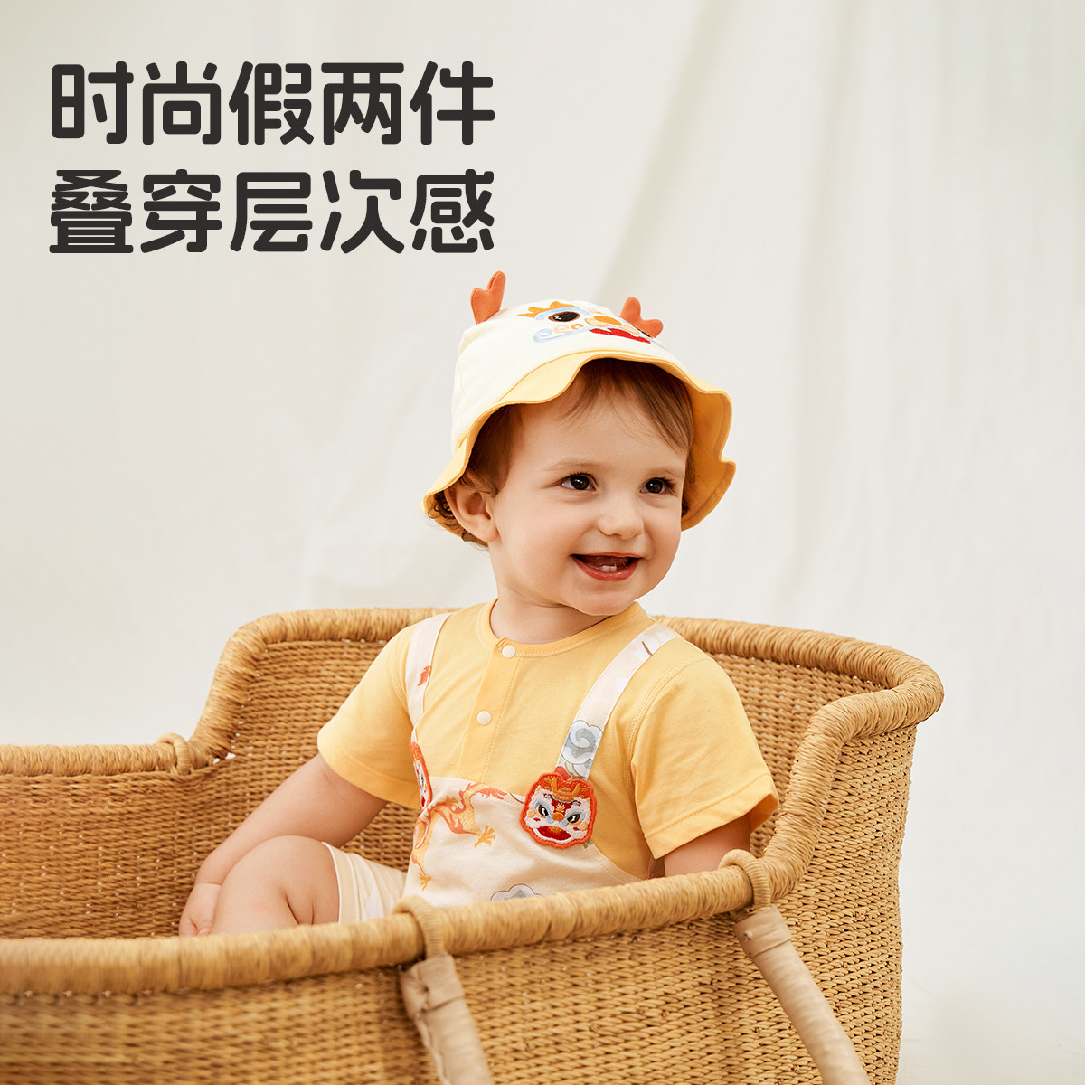 aqpa婴儿衣服龙年满月服周岁服纯棉夏季薄款宝宝连体衣哈衣外出服