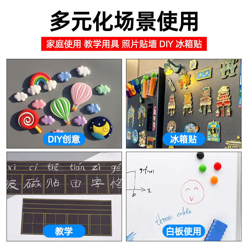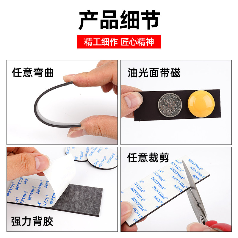 强力背胶软磁铁贴片白板黑板墙面磁吸贴引磁片教学教具橡胶铁条a4磁力贴吸铁石冰箱贴双面胶固定器