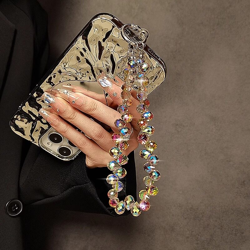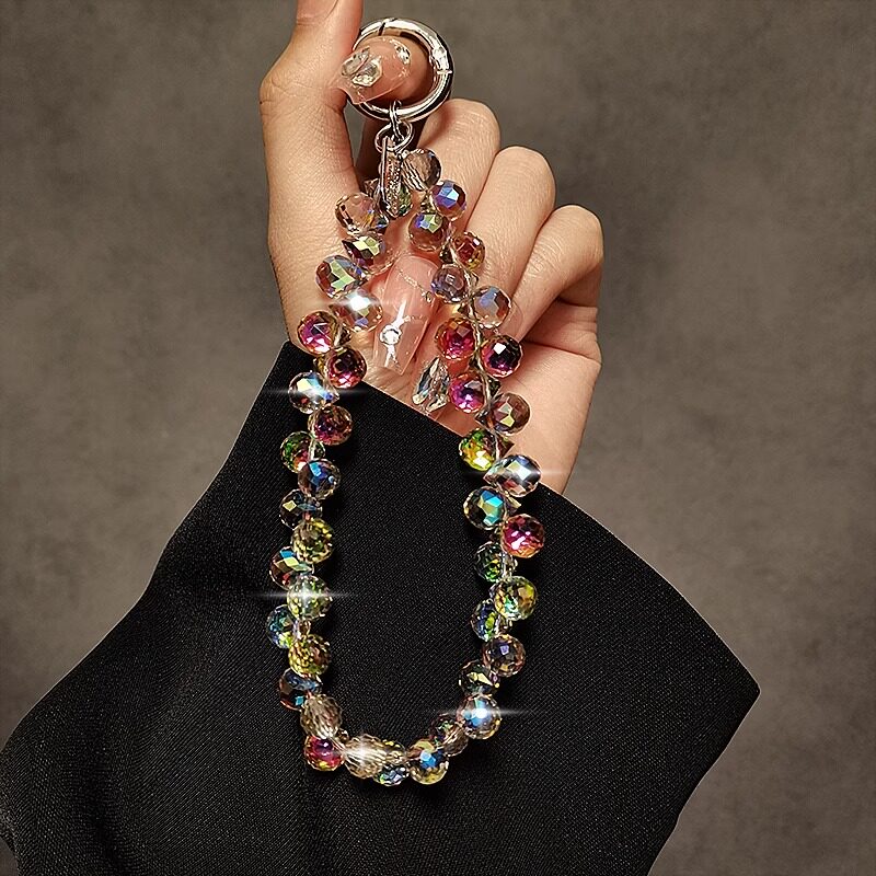 高级感炫彩水晶手腕上手机挂绳超好看奢华手机链高端串珠精致挂坠