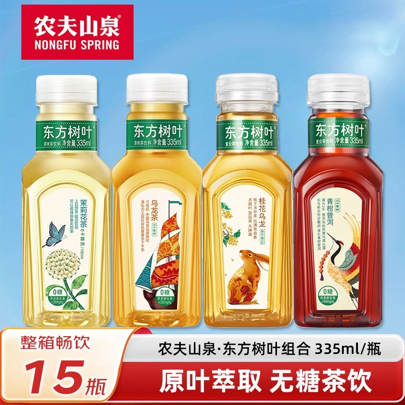 农夫山泉东方树叶335ml*15瓶茉莉花茶陈皮白茶青柑普洱茶饮料整箱