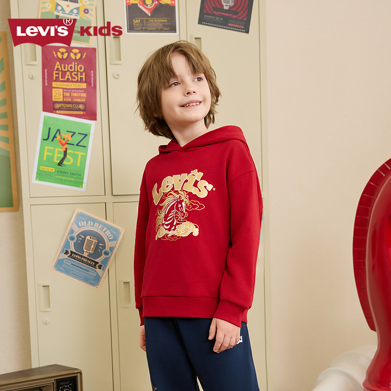 【新年马年】李维斯男童红色卫衣连帽儿童套头衫2026拜年过年衣服