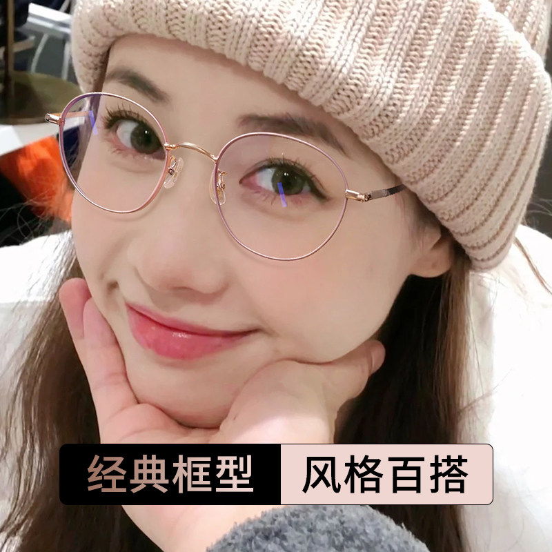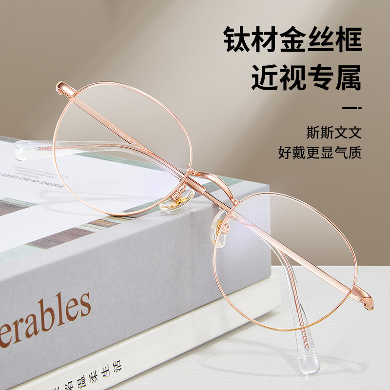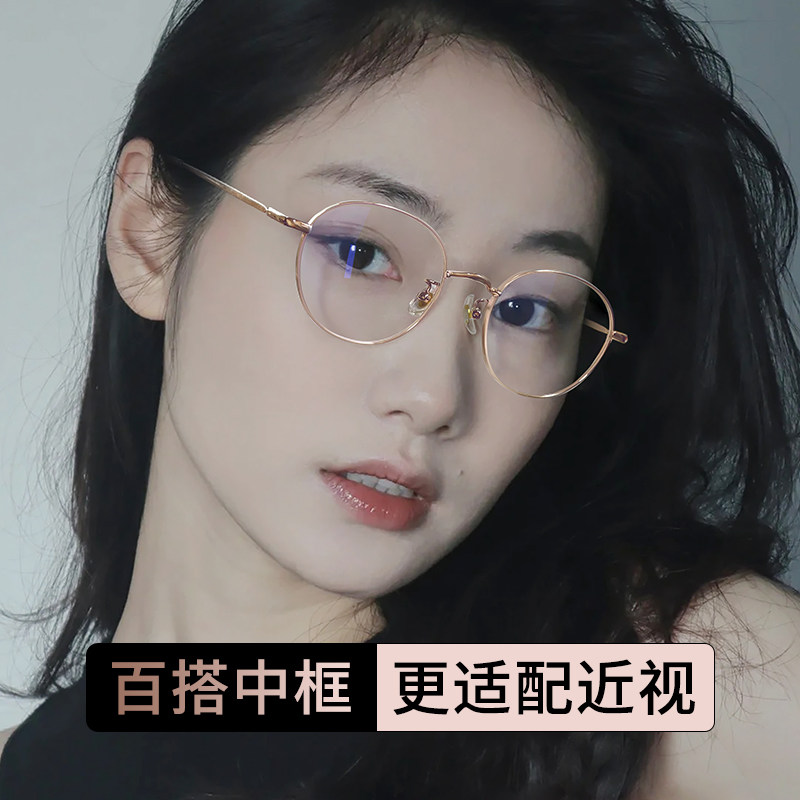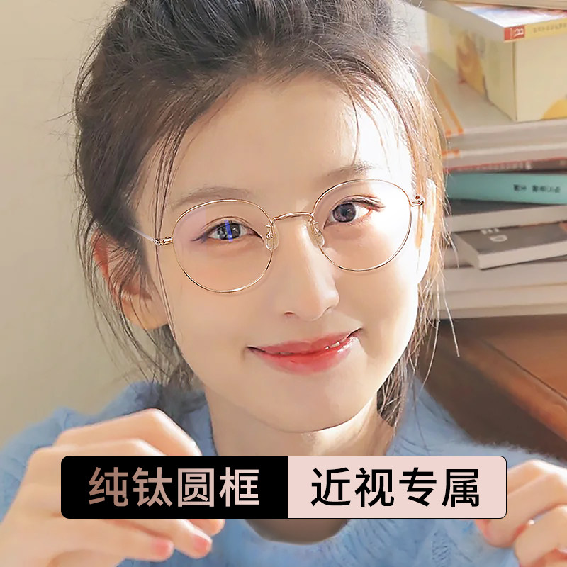纯钛圆框近视眼镜女可配高度数网上配镜片韩系素颜眼睛框金丝镜架