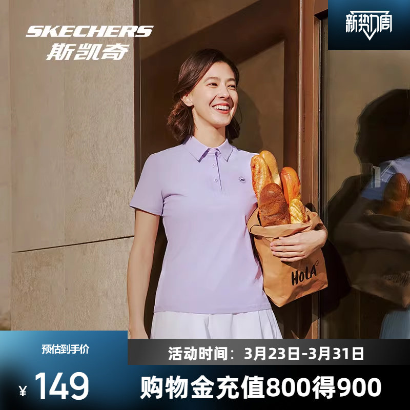 斯凯奇凉感POLO衫新品女款防晒上衣修身短袖时尚百搭