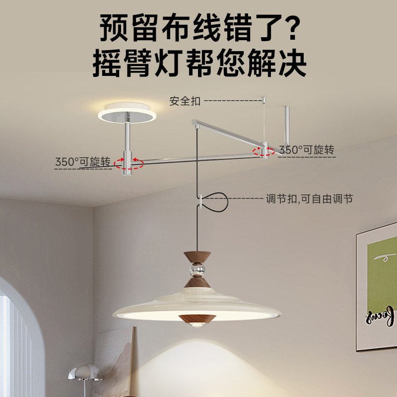 长虹法式中古风飞碟摇臂餐厅吊灯奶油风设计师全光谱护眼岛台灯