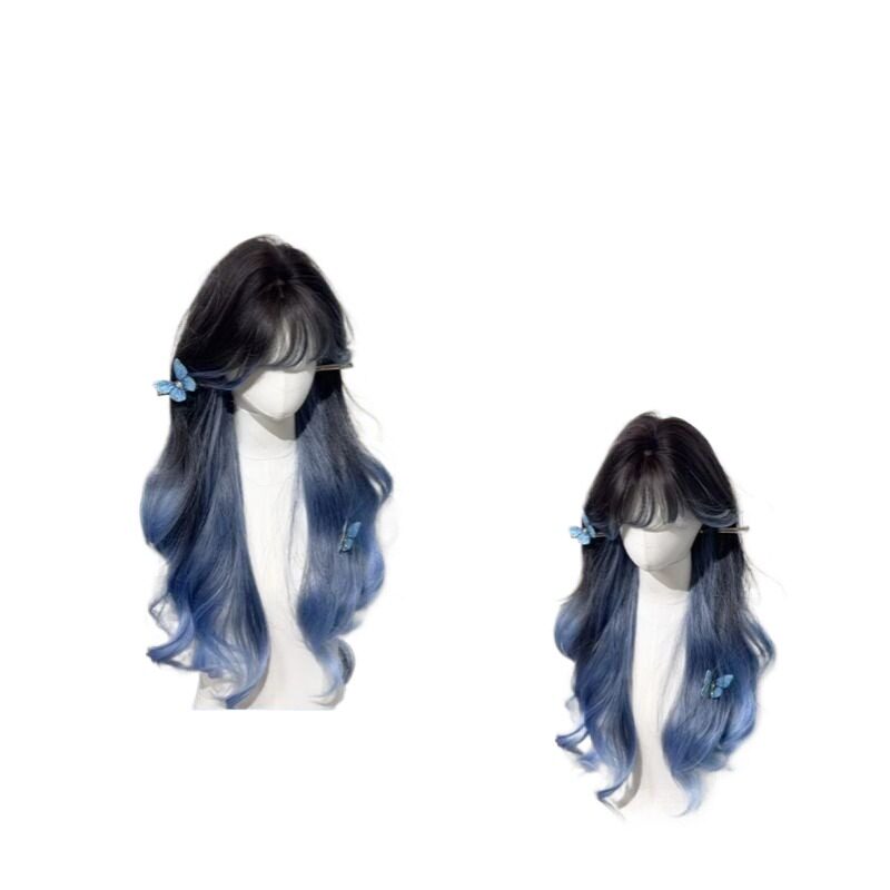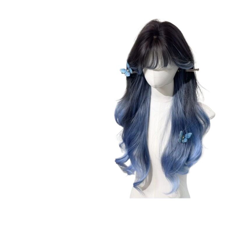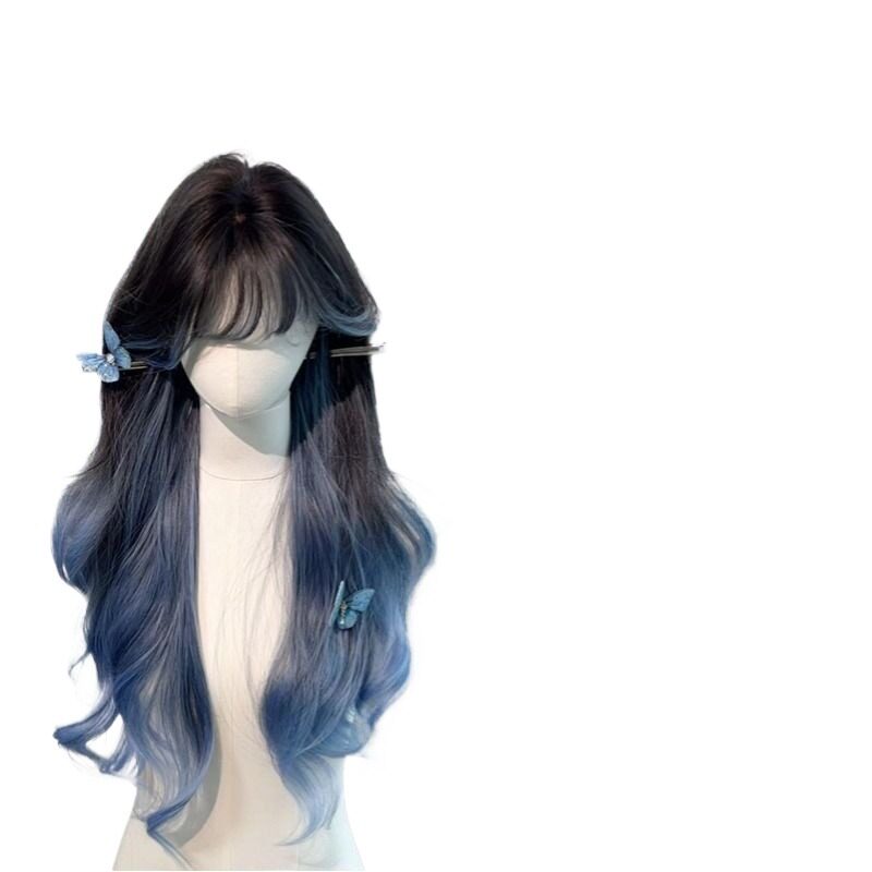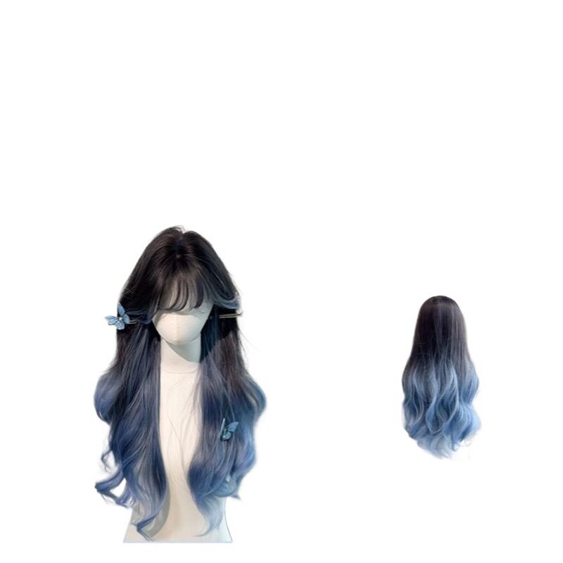【蓝】假发女生空气刘海蓝色挑染假发大波浪渐变长卷发仿真全头套