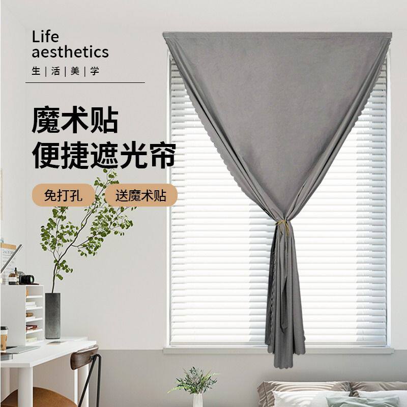 2025安装全遮光窗帘布简易免打孔魔术贴新款卧室飘窗遮阳防晒隔热
