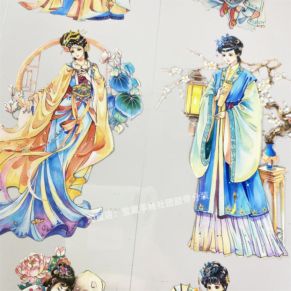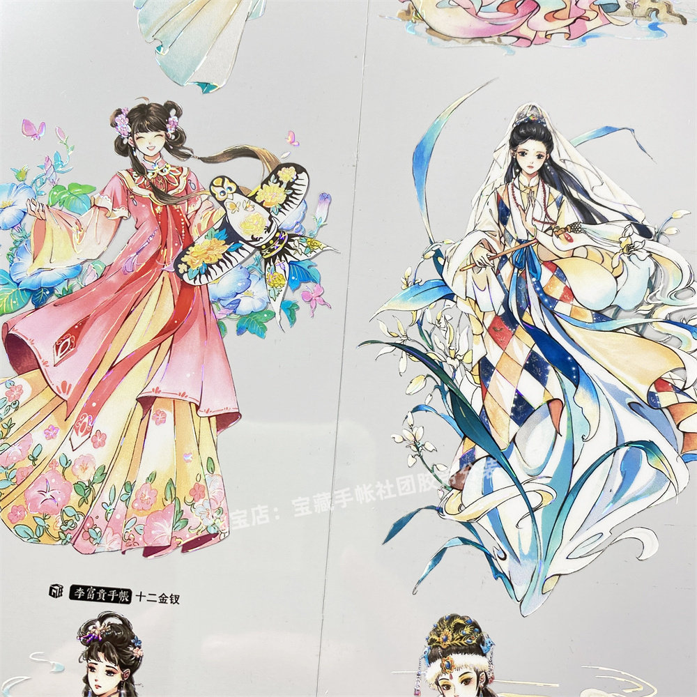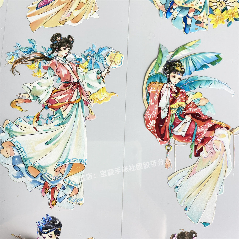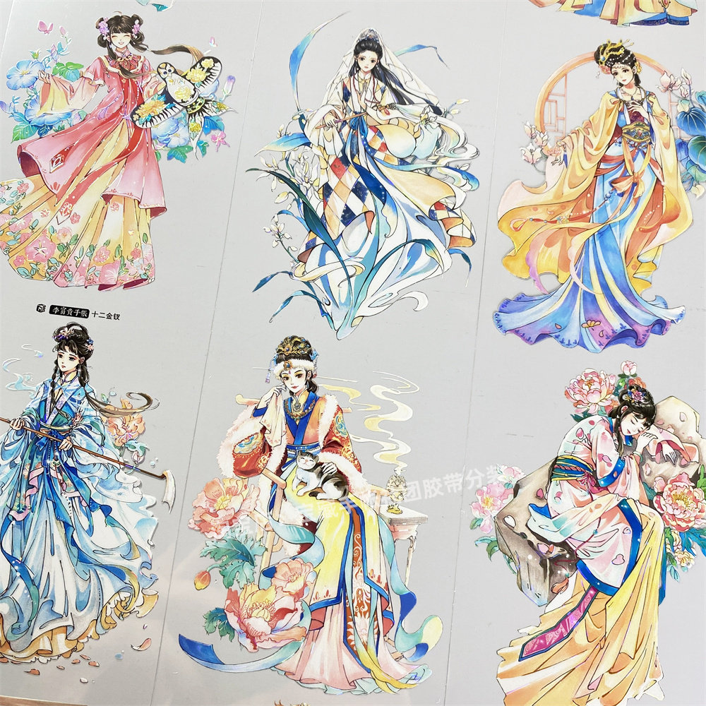 手帐分装胶带u1十二金钗李富贵美女人物PET古风素材账手机壳贴纸