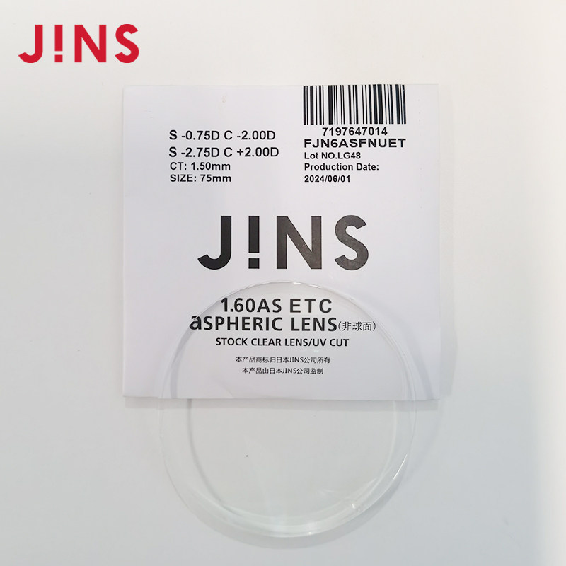 睛姿JINS镜片装饰眼镜套装眼镜配普通度数镜片专用链接1.60非球面