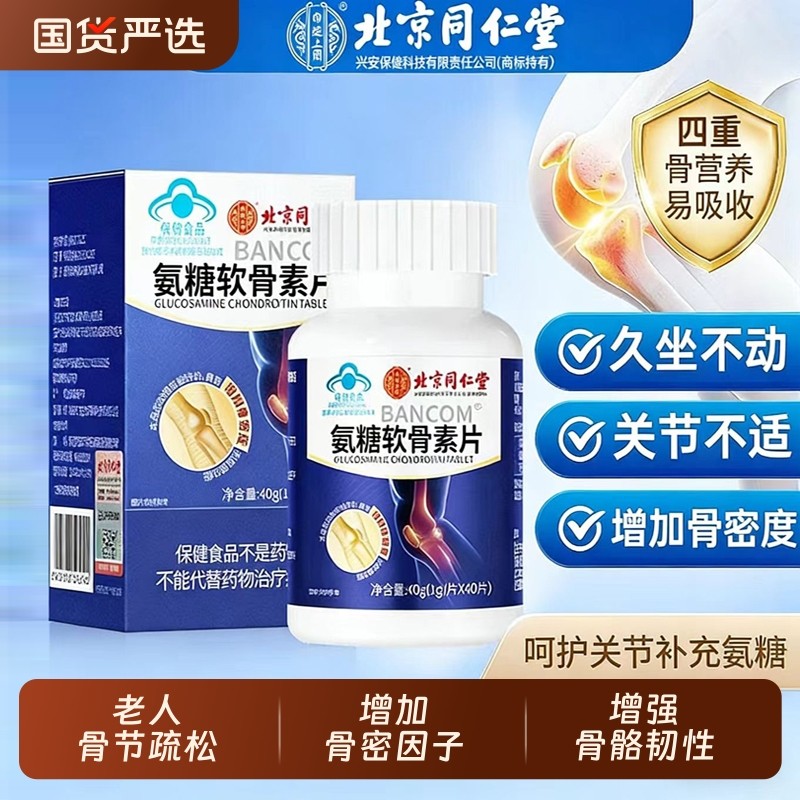 北京同仁堂氨糖软骨素钙片中老年护关节疼痛补硫酸安糖官方旗舰店