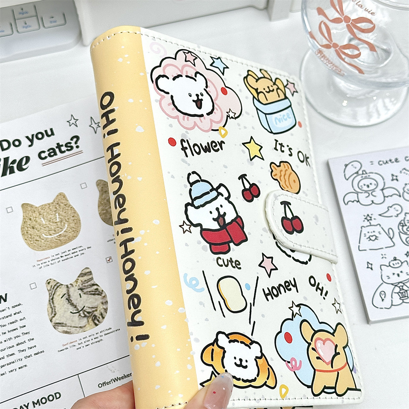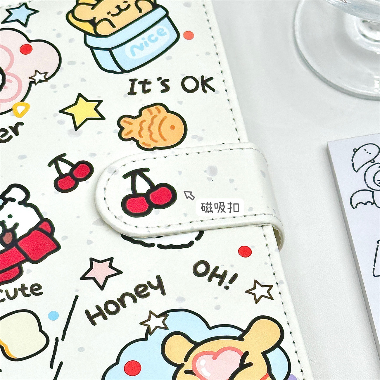 卡通线条小狗A6PU软皮活页本学生高颜值磁吸可拆卸笔记本记事本子