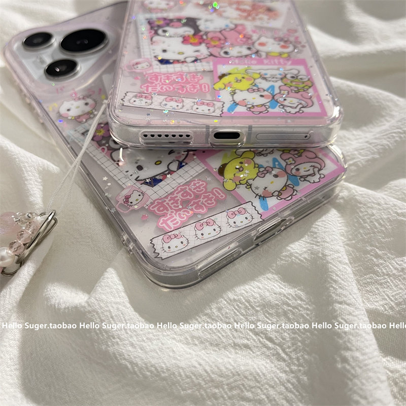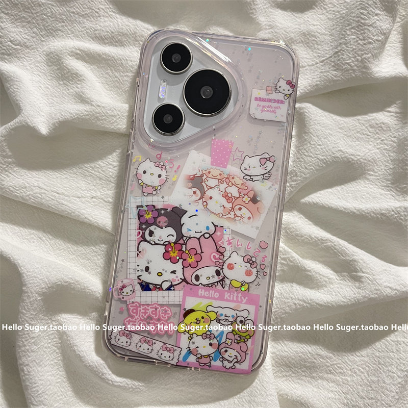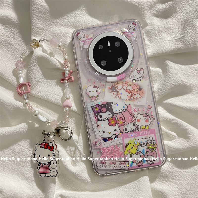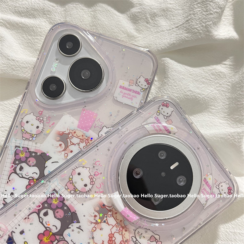 日韩卡通满屏闪粉粉色明信片美乐蒂kt猫适用华为mate70pro+手机壳mate60pro双层新款pura70pro链条mate60女款