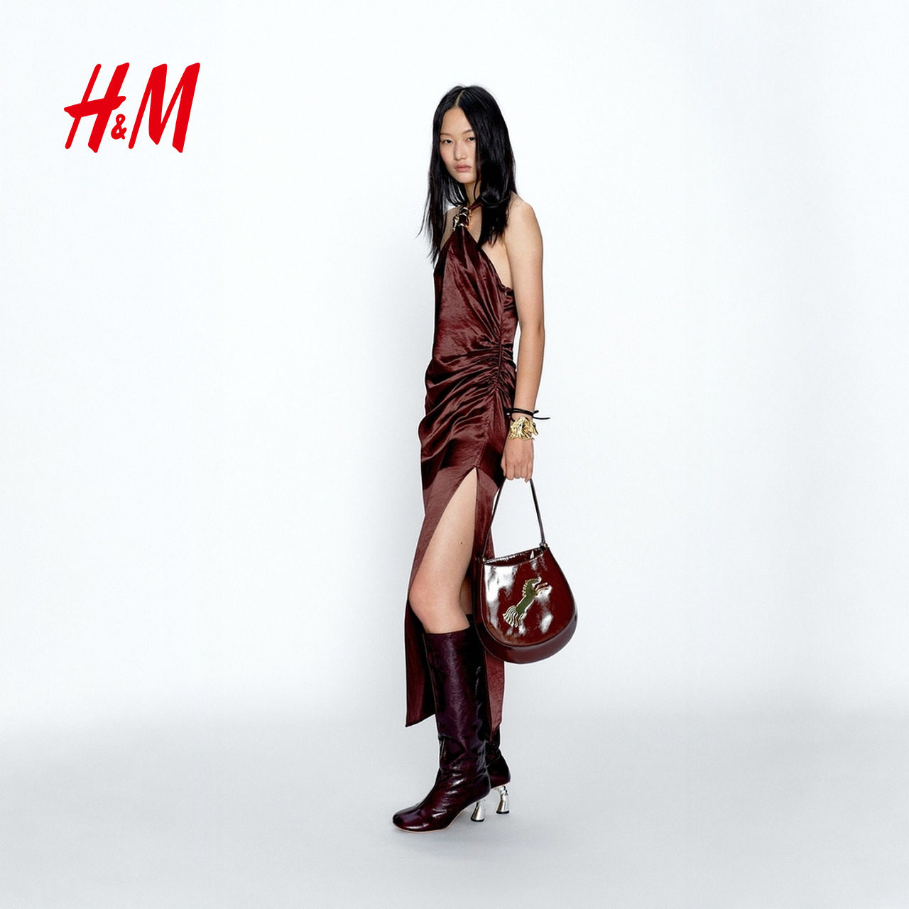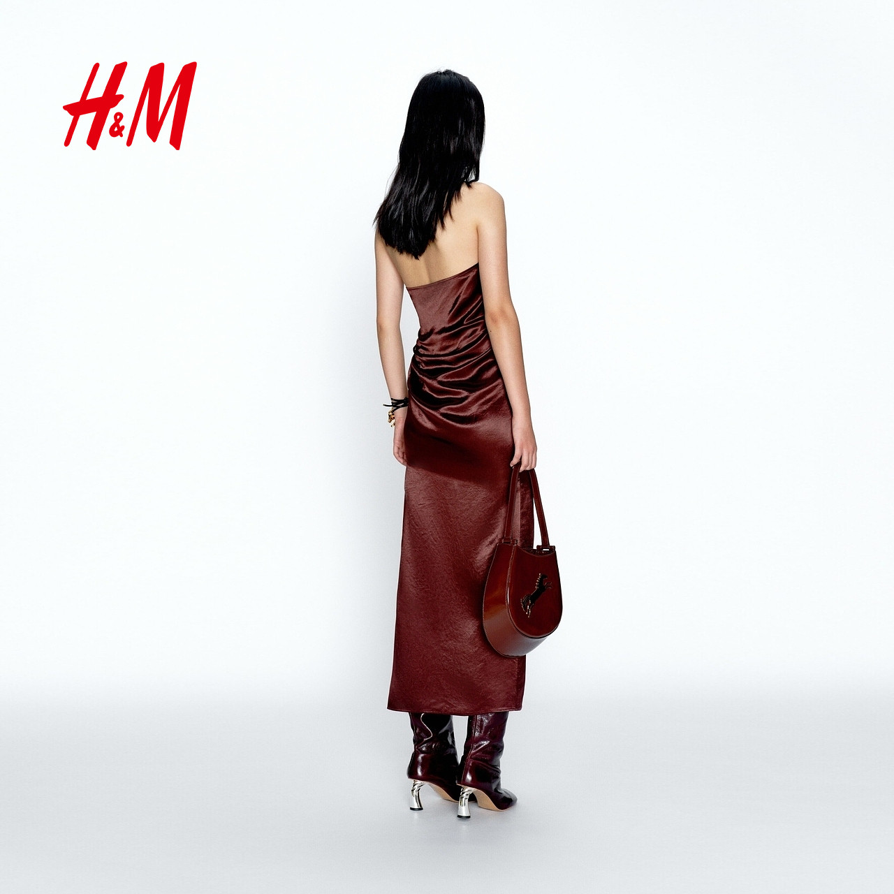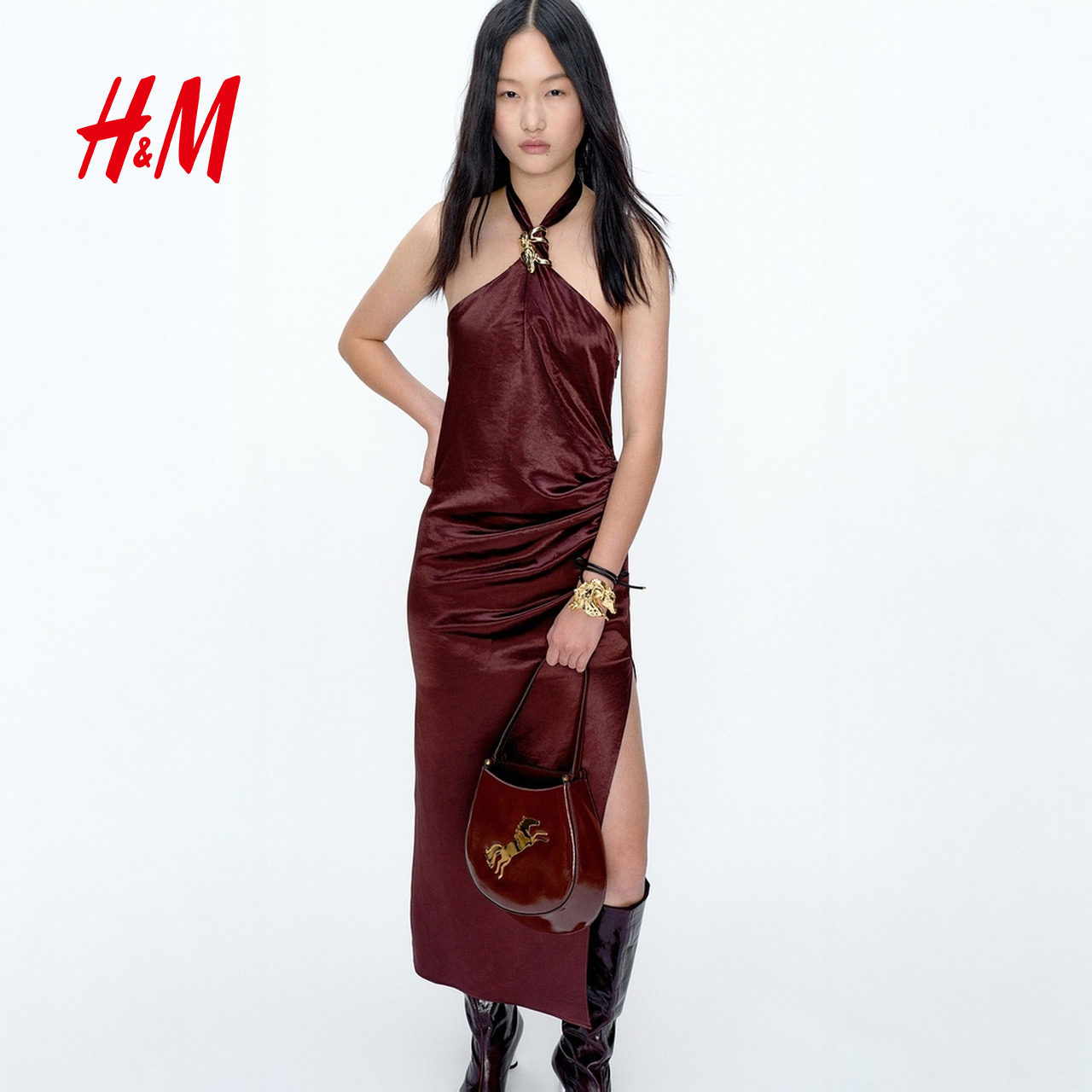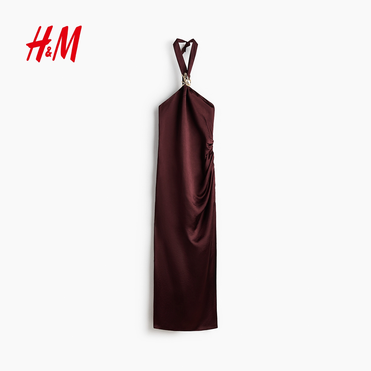JACQUES WEI H&M女装连衣裙2026春季新款缎质挂脖礼服裙1333010
