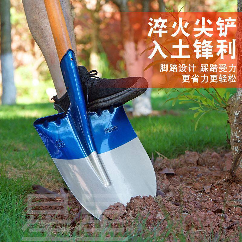 农用锹大铲园林农具钢锹钢铲铁锨淬火锰钢木柄植树铲子户外尖方煤