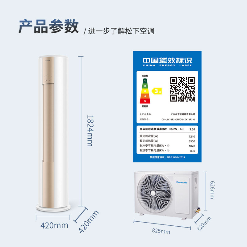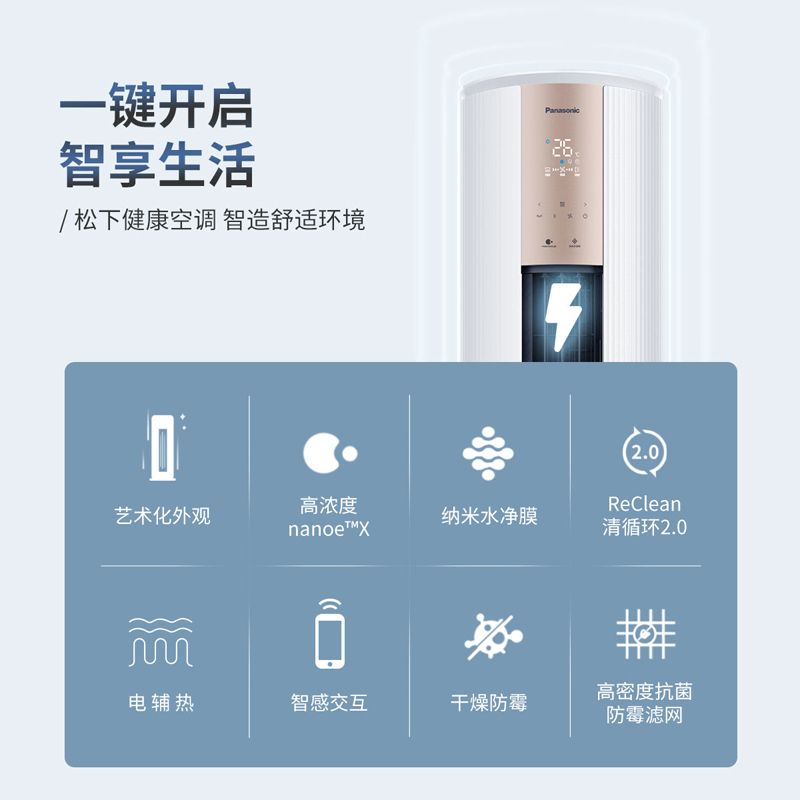 松下JM72F330N直流变频冷暖纳诺怡圆柱立式柜机空调WIFI智控三匹