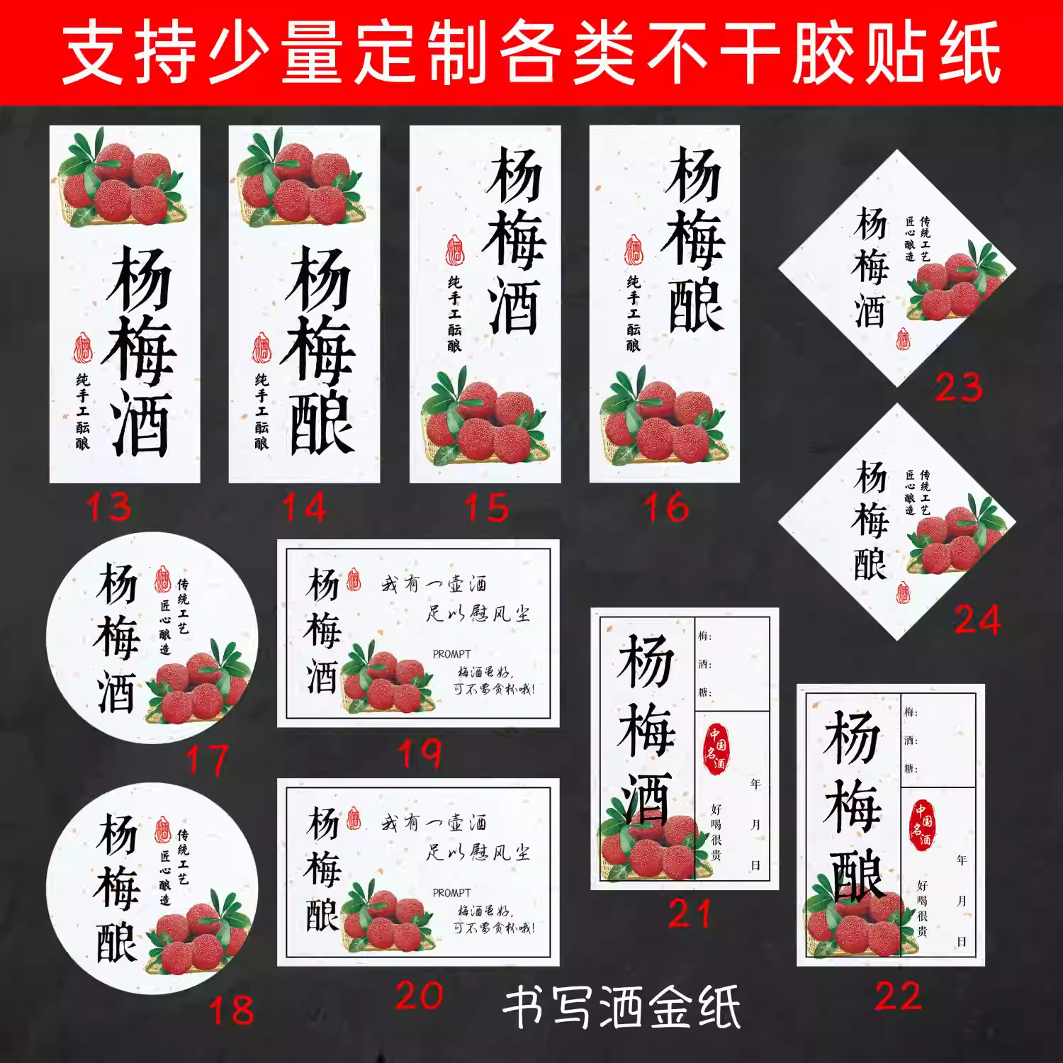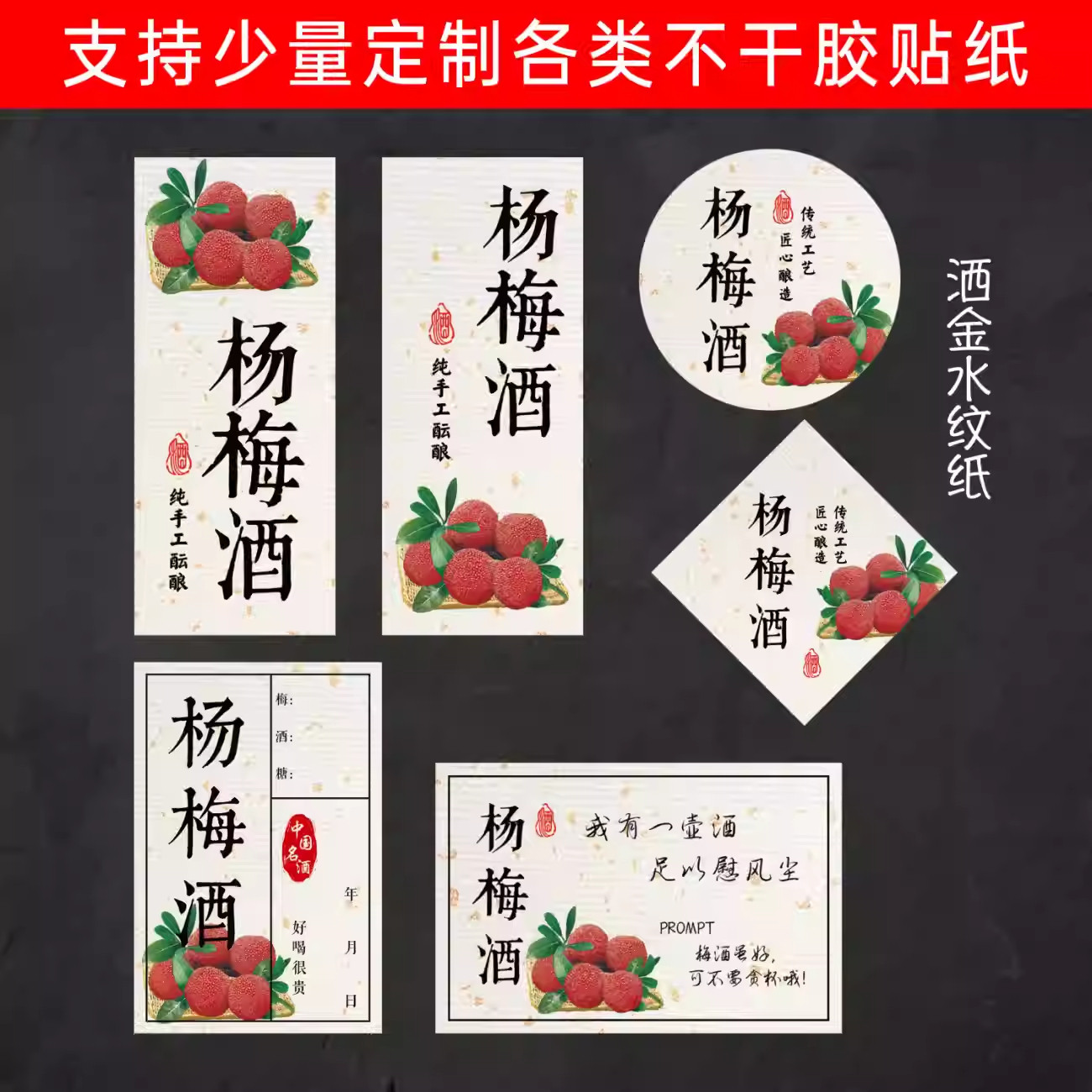 杨梅酒标签青梅酒桃花酿果酒不干胶设计商标珍藏酒瓶标签贴纸定制