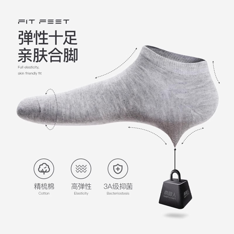 7A抗菌|蕉内银皮555Color男女情侣船袜浅口防滑棉袜隐形防臭袜子