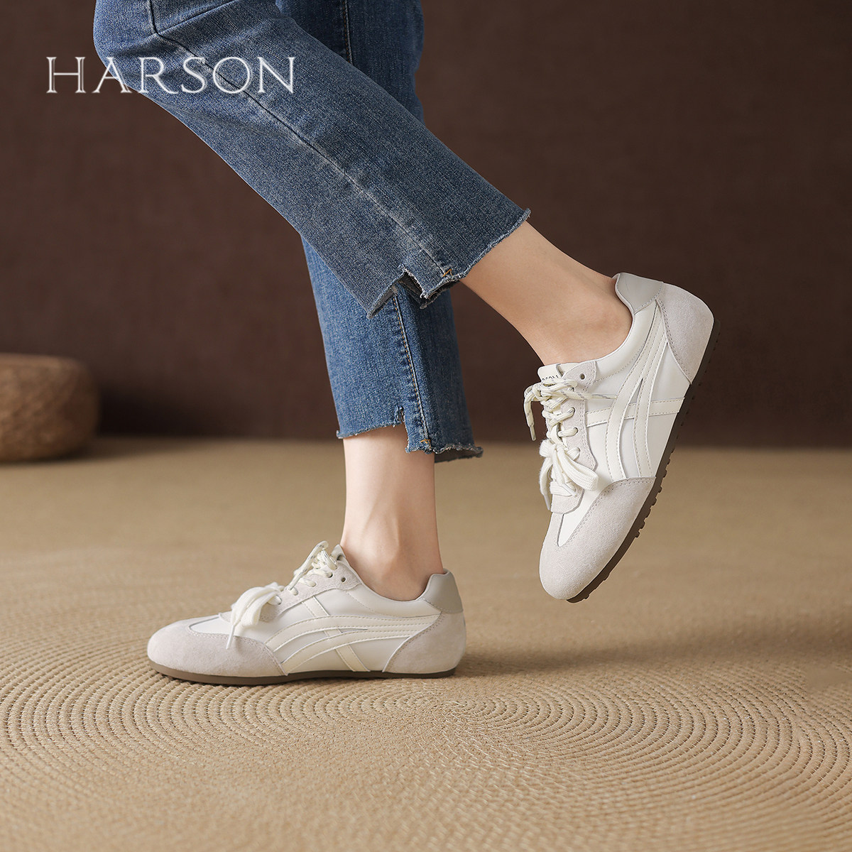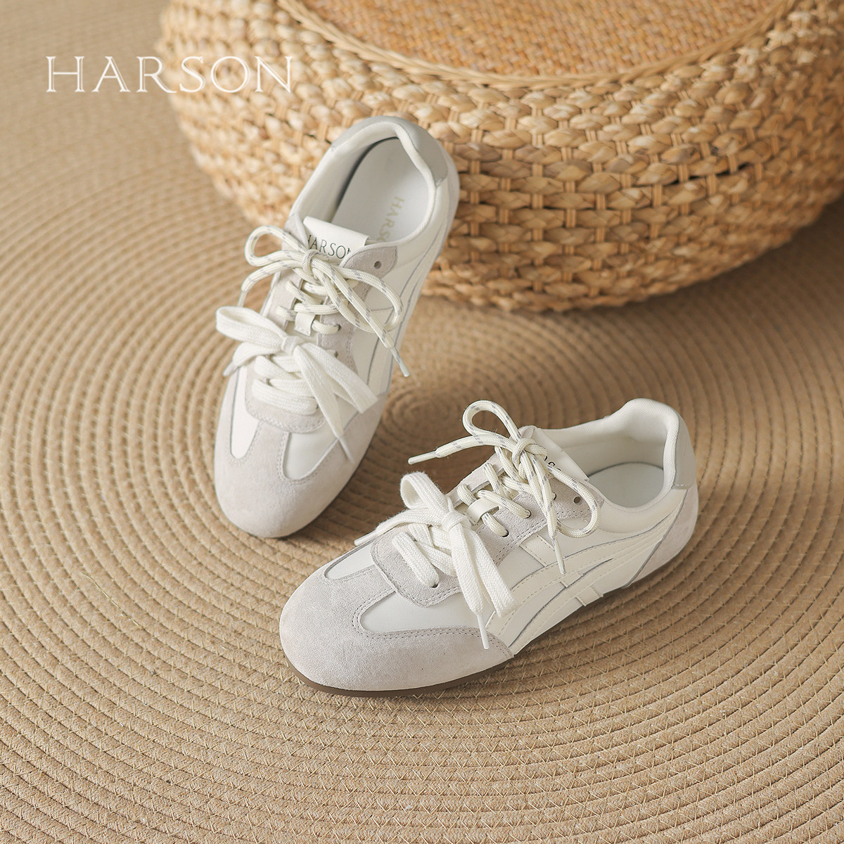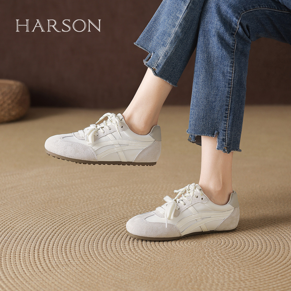 哈森复古德训鞋女2025秋季新款百搭系带休闲板鞋透气双鞋带运动鞋