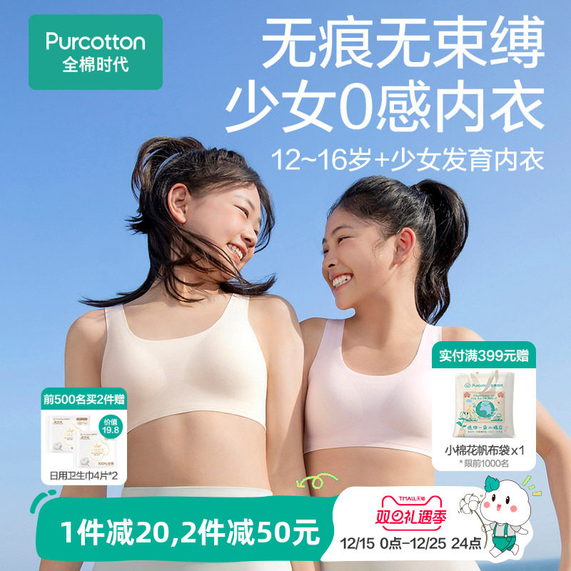 【无痕0感款】全棉时代少女发育期内衣青春期女孩小背心儿童文胸