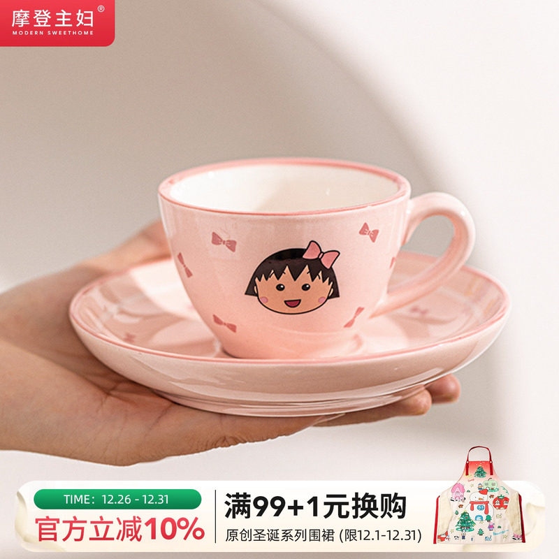 摩登主妇小丸子陶瓷咖啡杯碟高颜值杯子家用喝水杯闺蜜女生马克杯