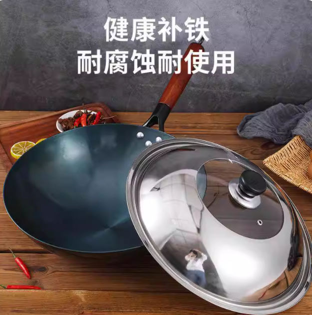 章丘手工铁锅老式家用炒锅瓦斯炉适用无涂层锻打铁锅炒勺炒锅