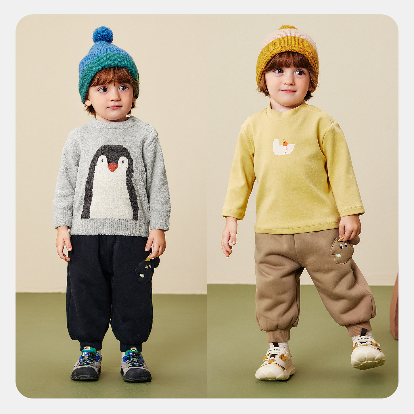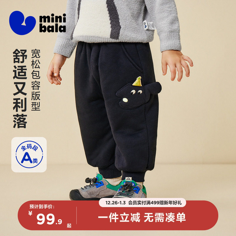 迷你巴拉巴拉男女童宝宝裤子2025冬新品保暖内里加绒柔软亲肤长裤