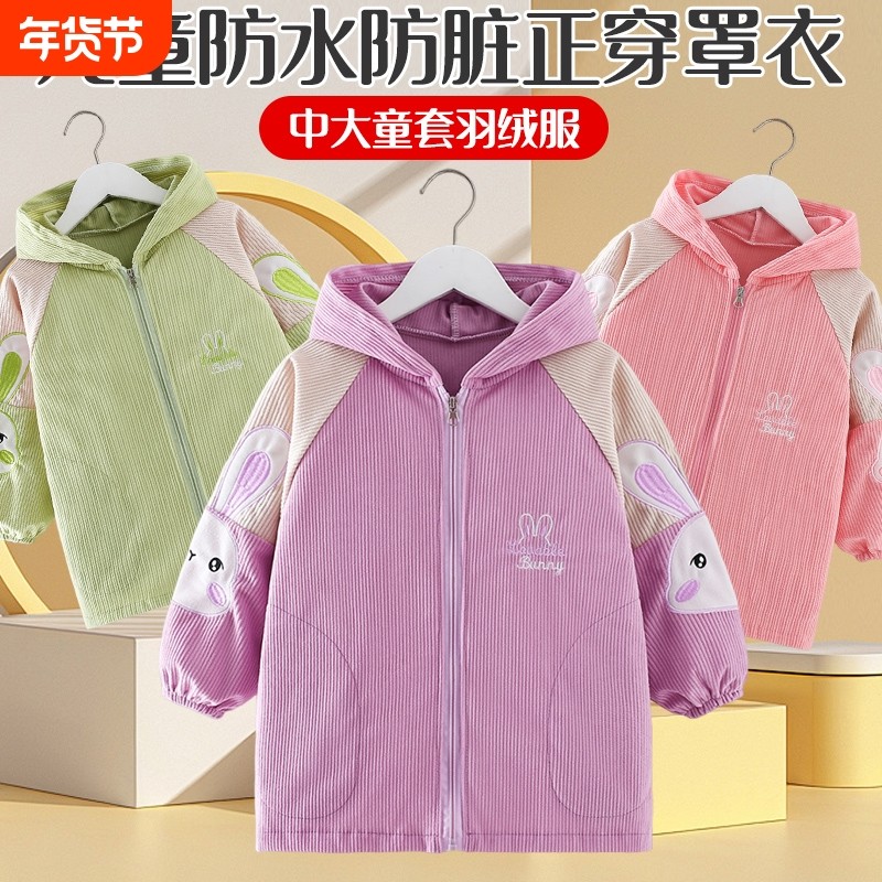 儿童羽绒服罩衣宝宝防脏外套小孩秋冬外穿洋气大童正穿衣防水吃饭