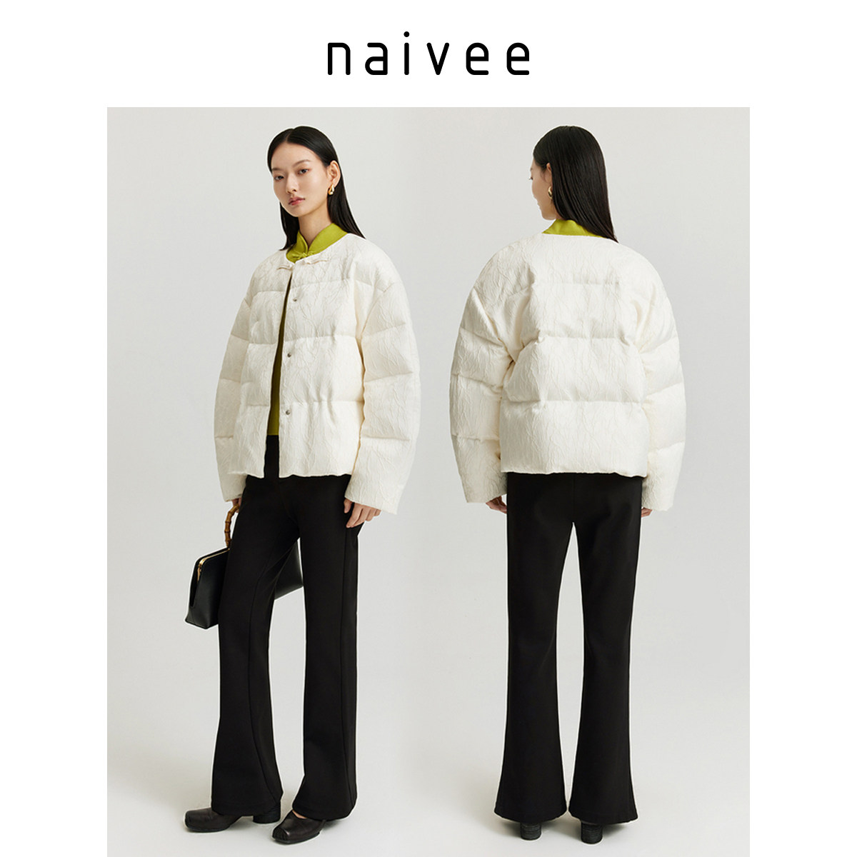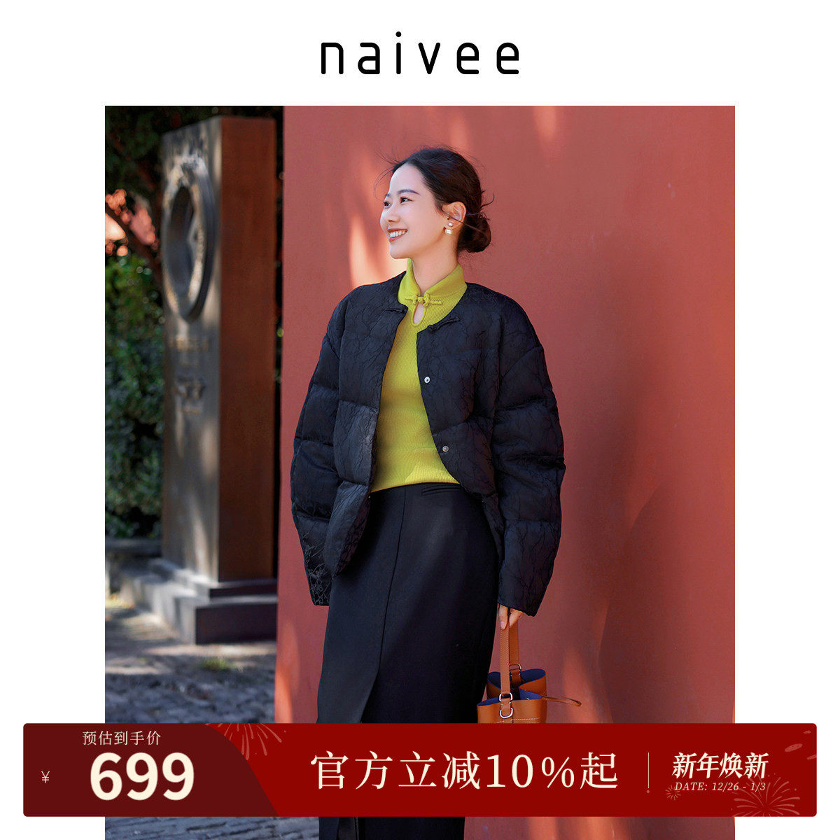 naivee纳薇冬新中式黑色短款羽绒服保暖面包服对襟外套女