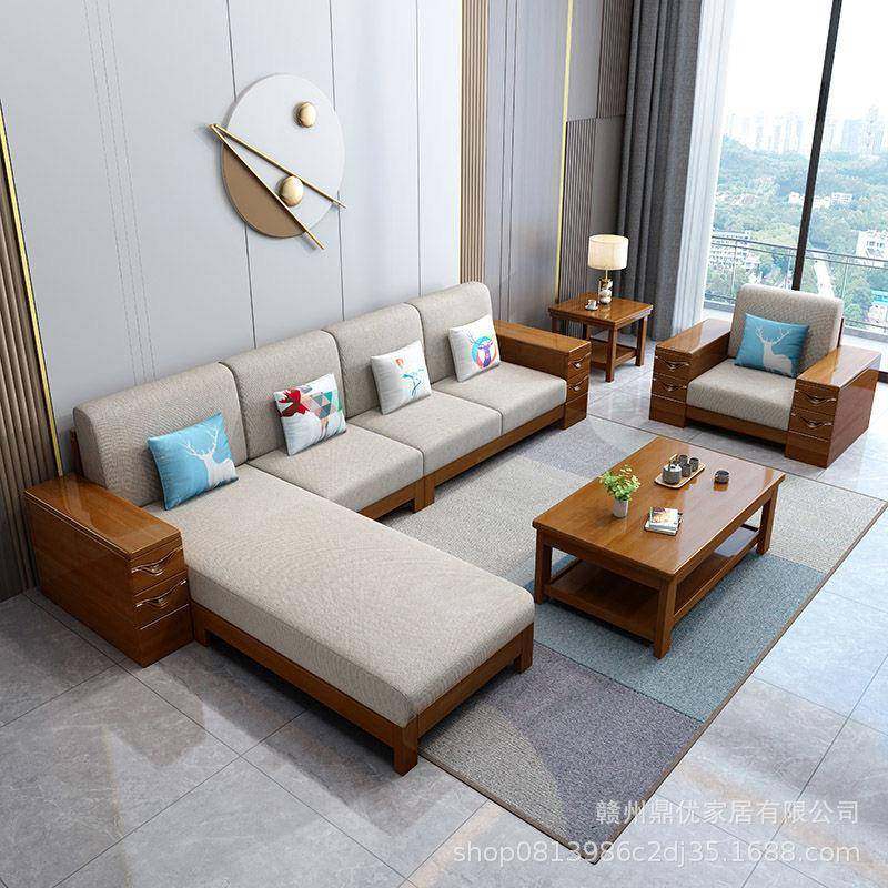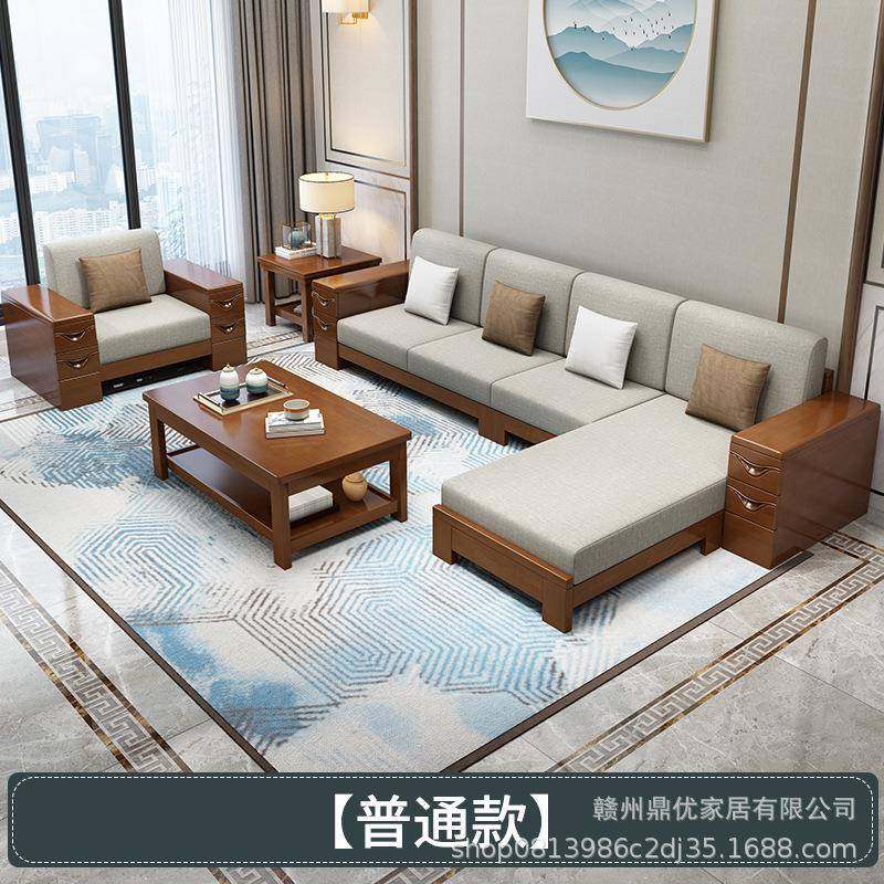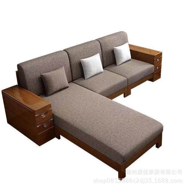 新中式实木沙发组合小户型冬夏两用布艺沙发床现代简约直销