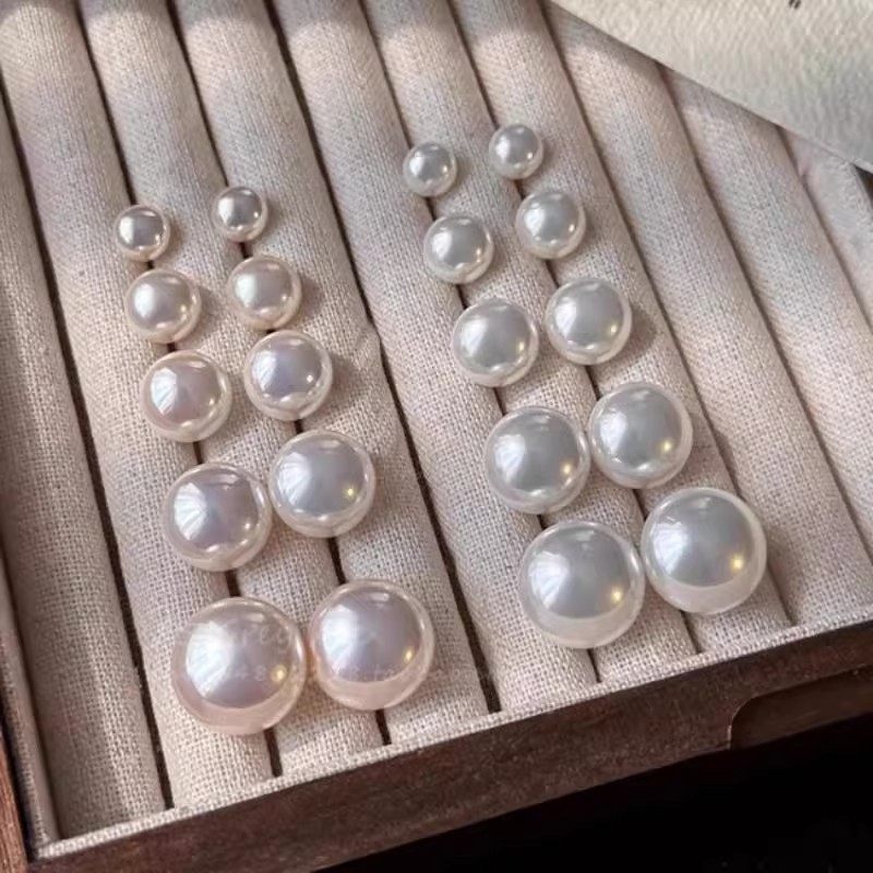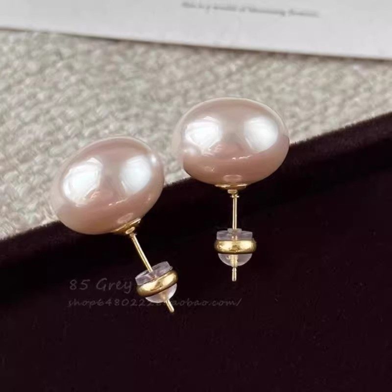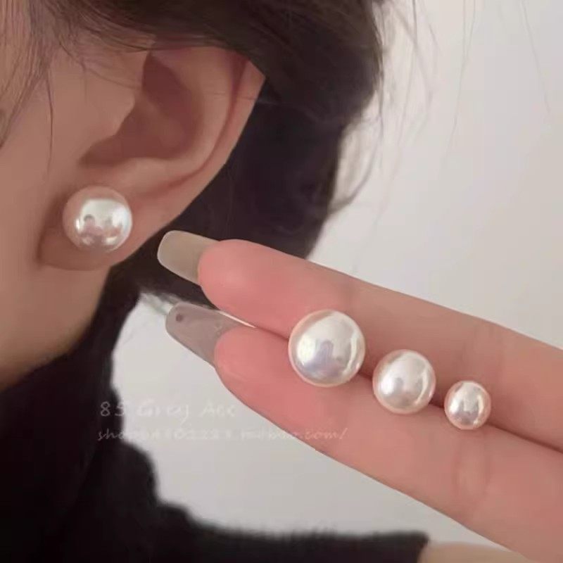 999纯银耳钉女施家珍珠馒头珠耳环扁圆高级气质法式复古轻奢耳饰