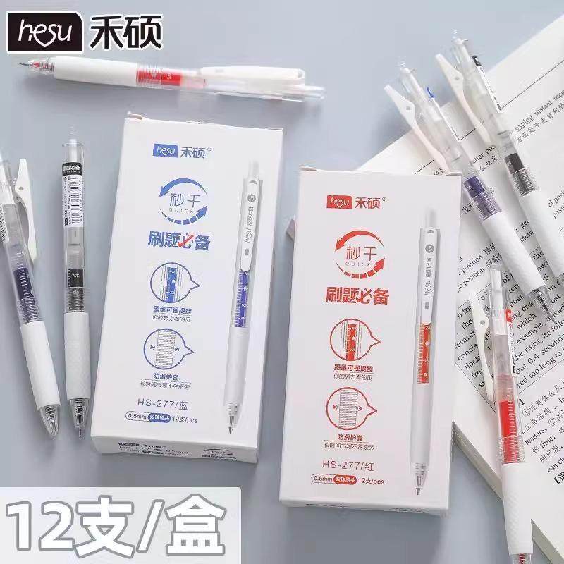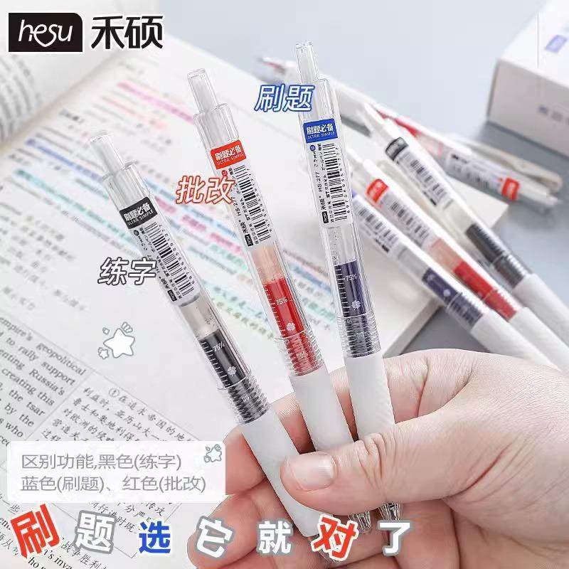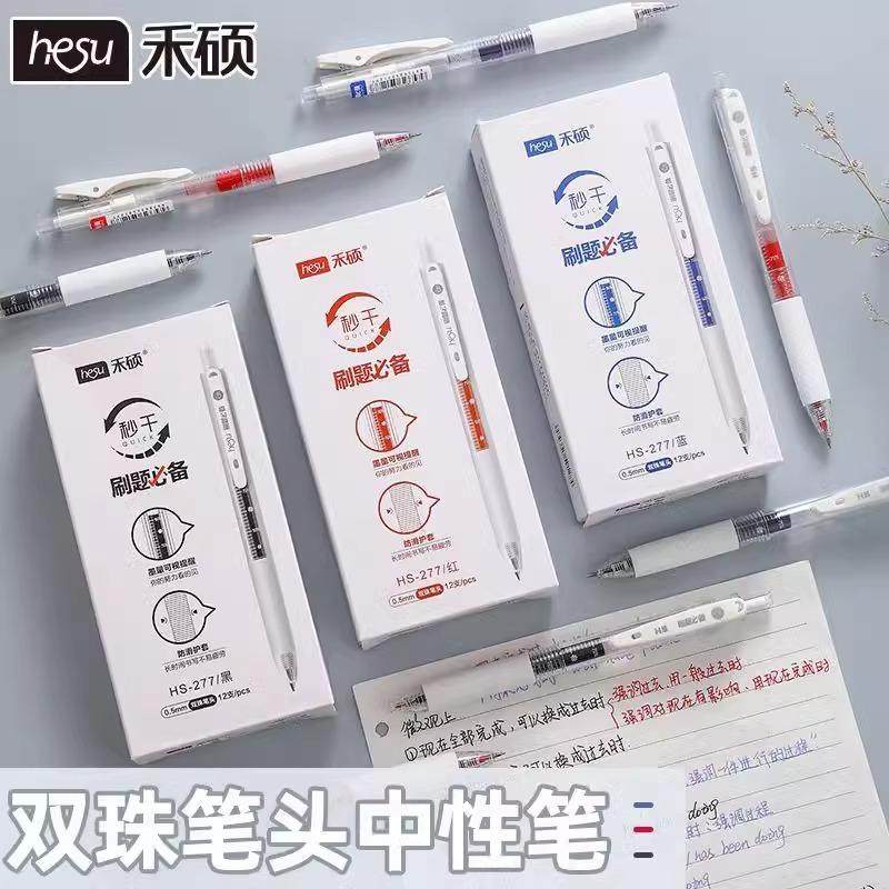 禾硕HS-277按动中性笔大容量巨能写ST刷题笔速干0.5黑笔批改红笔