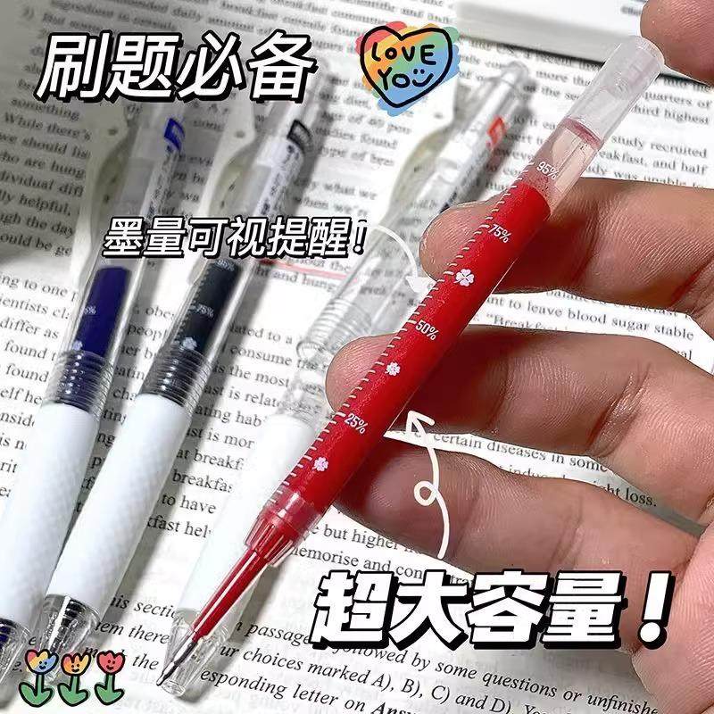 ST刷题笔高颜值按动中性笔圆珠笔黑色水笔小学生专用考试0.5速干碳素笔水性黑笔按压式做笔记签字笔非按斤卖