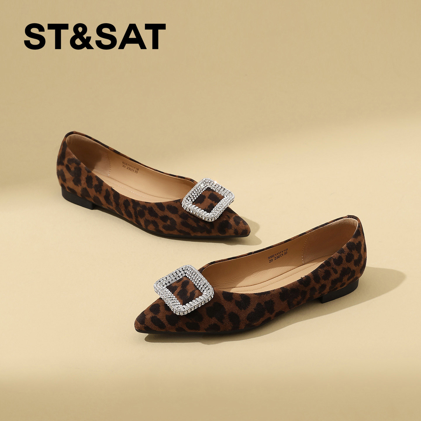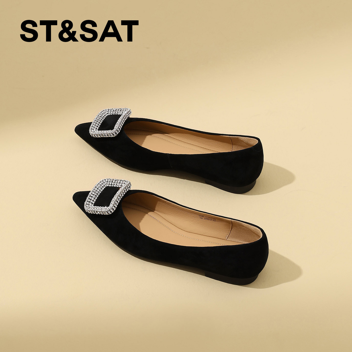 星期六法式黑色通勤浅口单鞋女2026年春季新款尖头水钻平底工作鞋