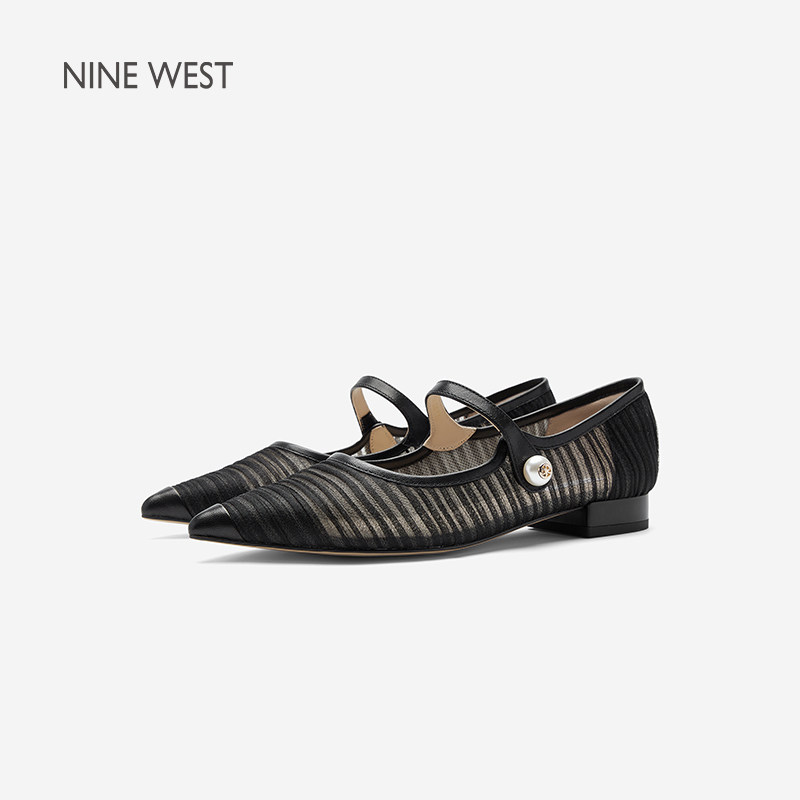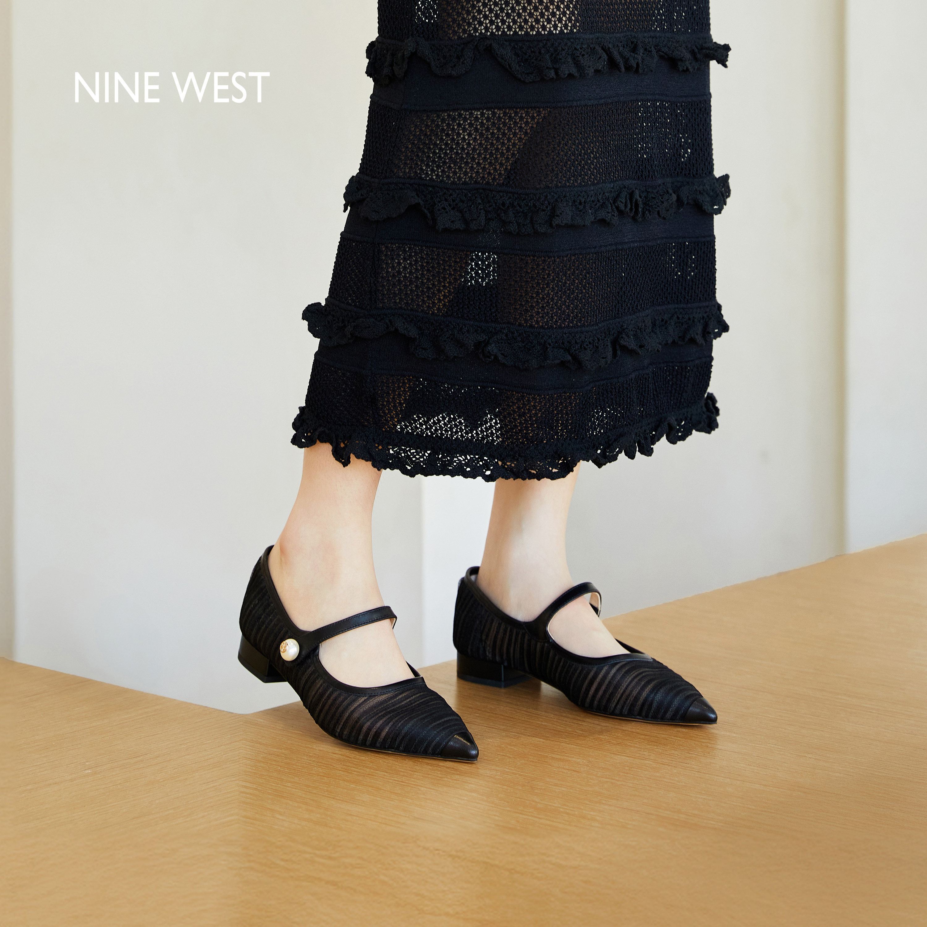 Nine West/玖熙浅口单鞋女夏季新款网纱透气玛丽珍一字带凉鞋