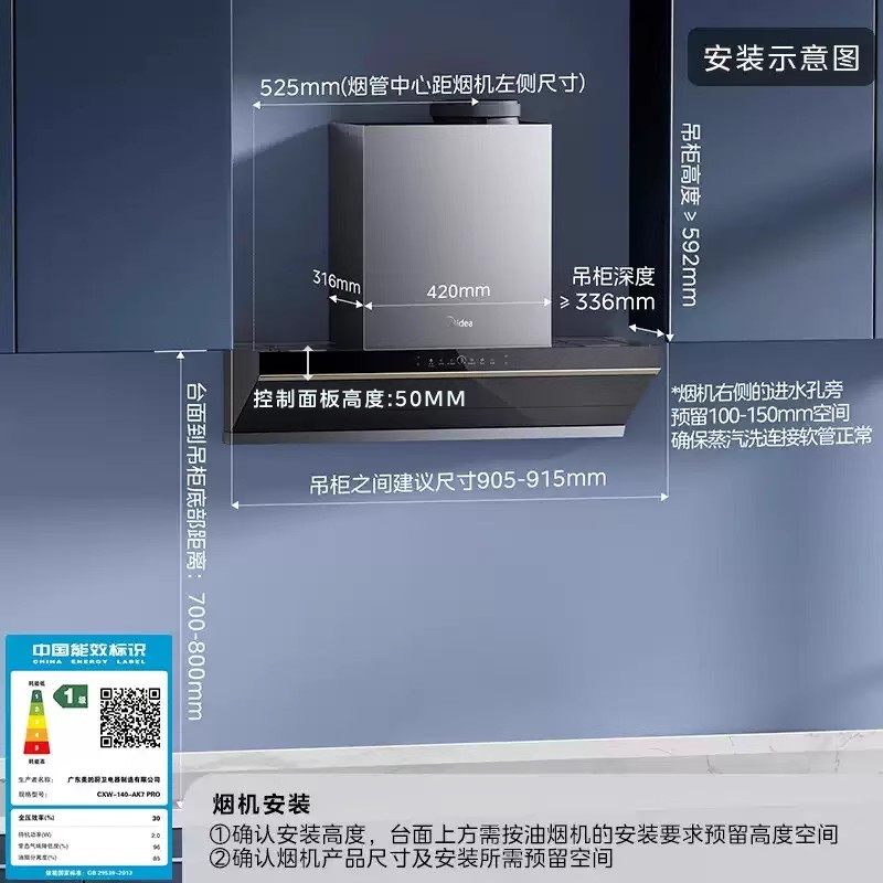 美的蒸汽洗AK7Pro家用大吸力厨房脱排抽油烟机AK9PRO烟灶套装官方