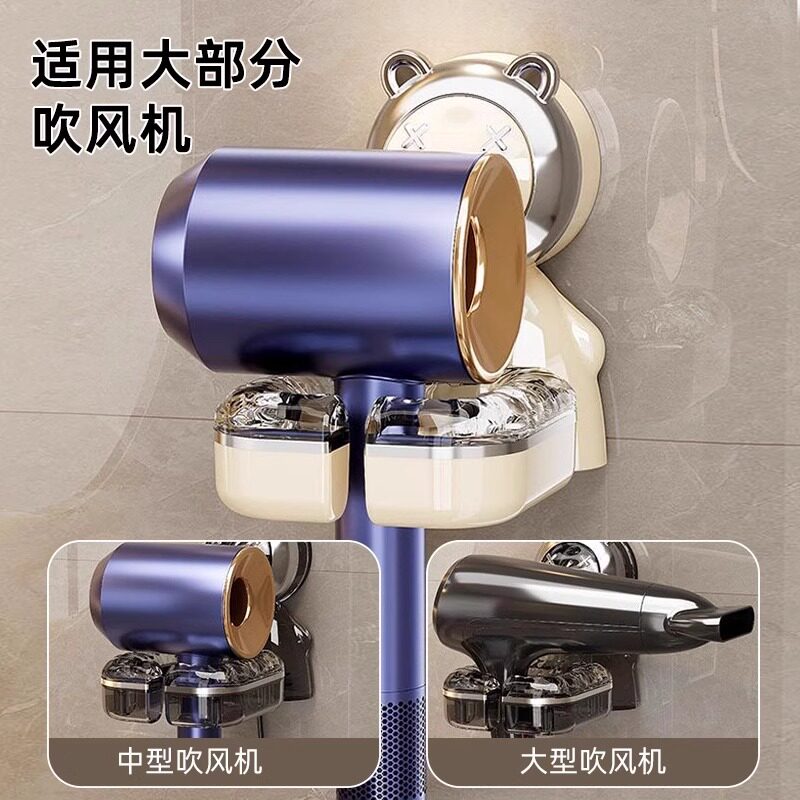 小熊吹风机置物架懒人风筒支架吹风机收纳免打孔奶油风电吹风支架